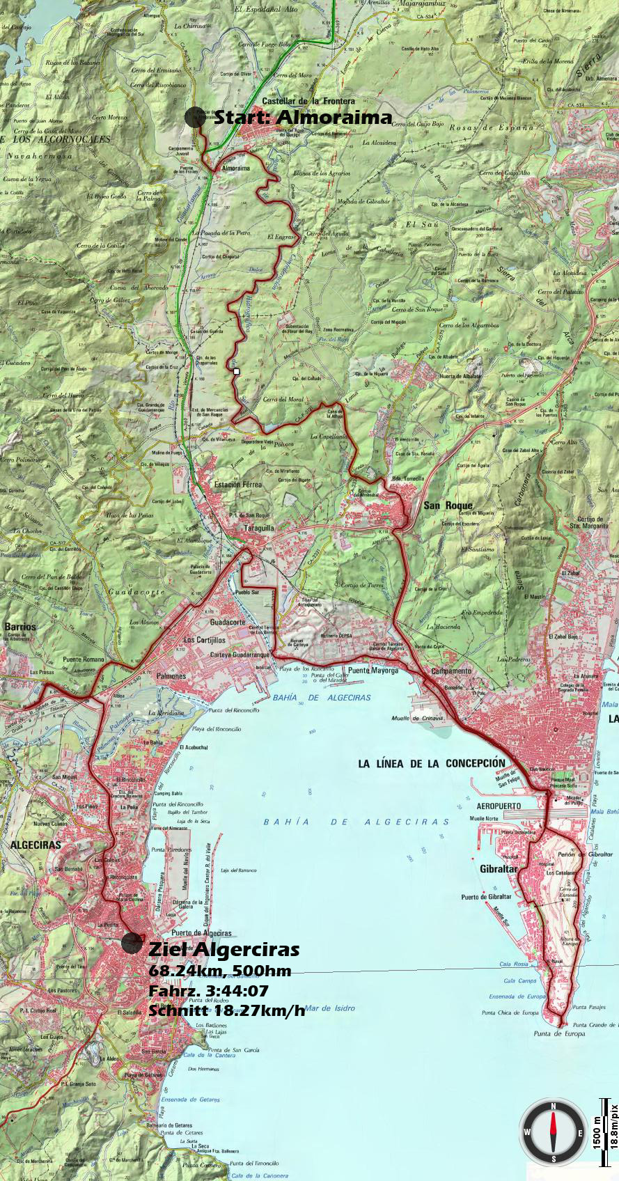 14. Etappe: Almoraima- San Roque- Gibraltar- Taraguilla- Algeciras 68.24km, 500hm