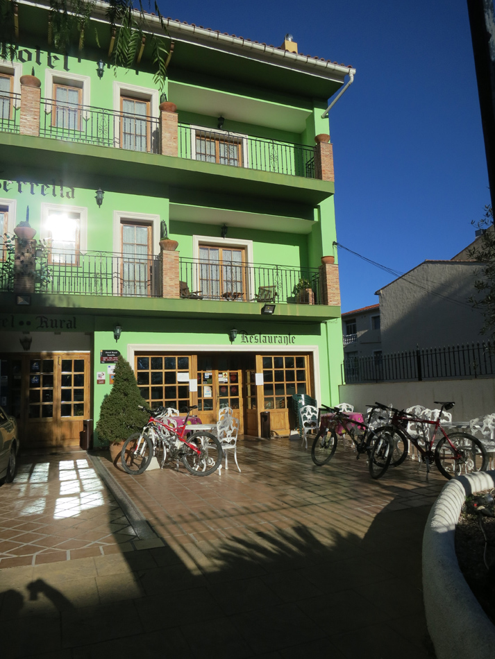 kurz vor dem Start, vor dem Hotel in Castell de Castells