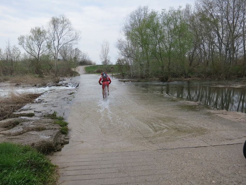 Überqueren einer hochwasserführenden Furt bei Villanova de la Muga