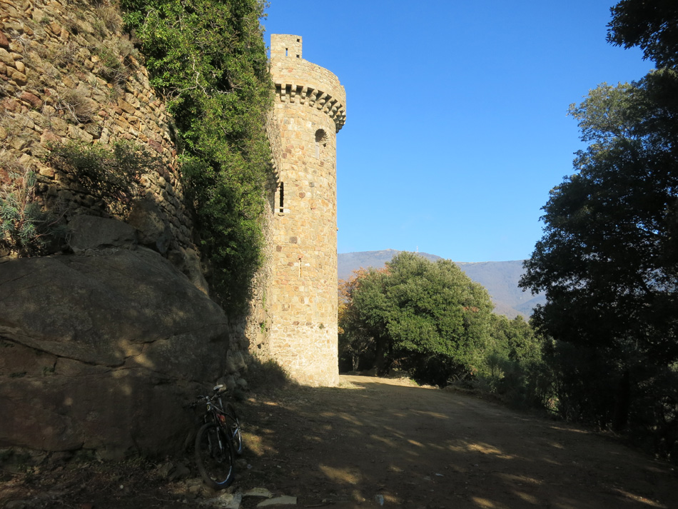 Abfahrt vom Coll del Faig nach Cantallops, Blick auf das Castell de Requesens