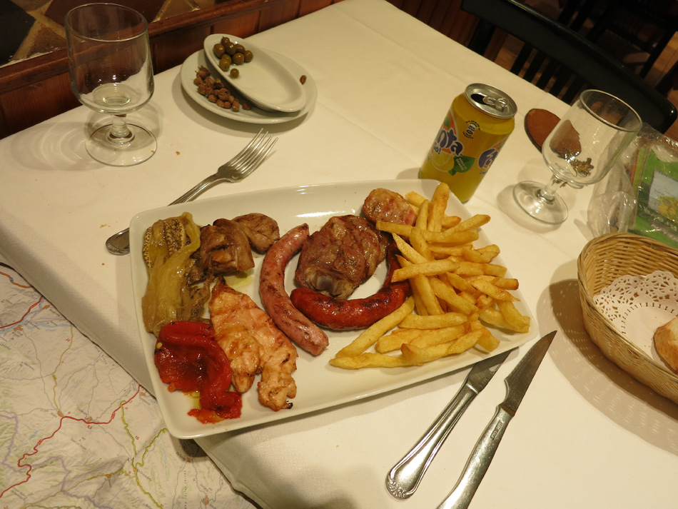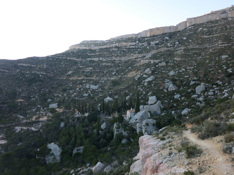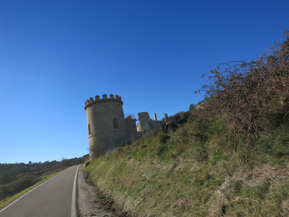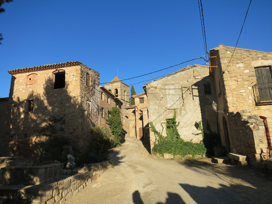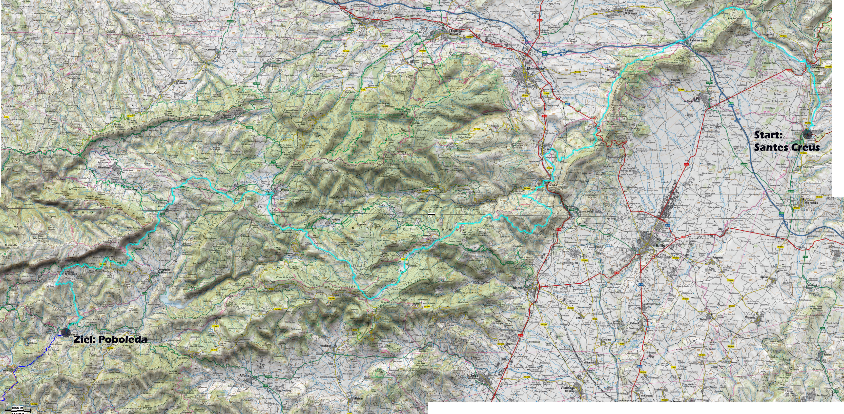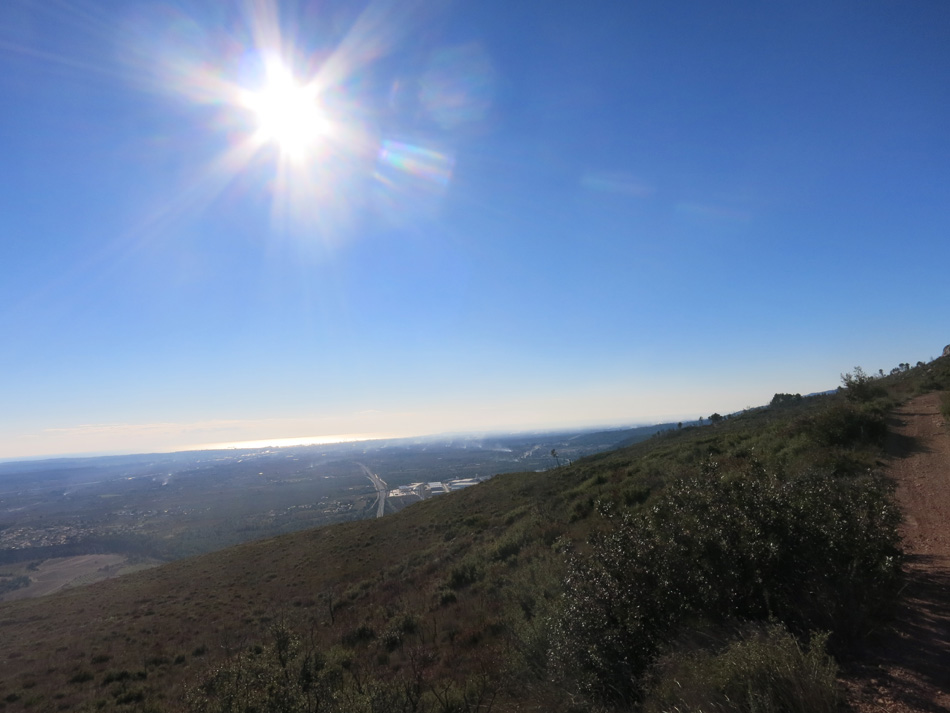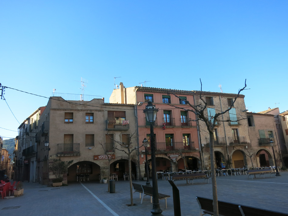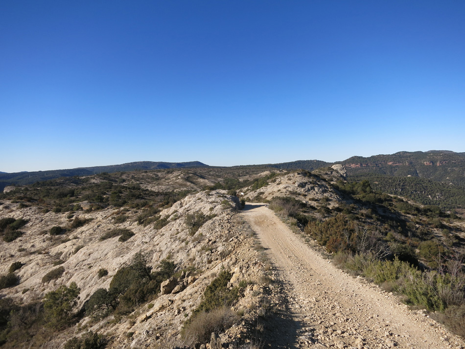 Heute Morgen gab es für mich das Eingeklemmte aus der Bar welches ich gestern noch besorgt hatte. Um 8Uhr ging es los. Zuerst folgte ich der Routa de Cister ( Fernwanderweg GR 175) bis zum Col de Sarria auf 666m. Dort ging es dann schon ein mir bekanntes Stück auf dem GR7 weiter nach Vilaverd. Der Wanderweg verlief hier meist auf der Schattenseite des Gebirges so das es mit dem mässigen Nordwind oder der Biese recht kalt war. Die Pfützen am Schatten waren am zufrieren. Kurz nach 11 Uhr suchte ich dann in La Riba einen Laden auf. Danach begann der Längere Aufstieg nach Montral. Ich wählte hier eine panoramareiche Variante mit Meerblick auf der Sonnenseite des Gebirges. Von Montral ging es dann durch das Serra de l' Embesta Gebirge mehr oder weniger um 1000m ü M nach Prades. Hier hatte ich noch einen grossen Dorn im Vorderrad eingefangen. Nach dem Schlauchwechsel erreichte ich gegen 15 Uhr die sehr schöne Ortschaft Prades. Hier suchte ich zuerst mal eine Bar auf um ein Eingeklemmtes zu essen und mich aufzuwärmen. Hier fasste ich auch den Entschluss noch weiter in Richtung Montsant Gebirge zu fahren. Bei der kleinen Ortschaft Albarca begann dann Highlight des heutigen Tages. Es war dies der GR174 Wanderweg welcher bei der Ermita de S. Juan vorbei nach La Morera de Montsant führte. Er war fast durchwegs fahrbar und befand sich auf einem kleinen Felsband. Um 17.30 bei Sonnenuntergang erreichte ich die Ortschaft La Morera de Montsant. Wie ich mir dachte war das Hotel hier geschlossen so dass ich auf einer Piste noch 6km abwärts nach Poboleda fuhr. Hier gab es für einmal wieder ein schönes Hostal welches sogar ein Restaurant mit gutem Essen hatte.