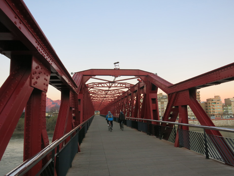 Fahrt auf der Alten Eisenbahnbrücke in Tortosa über den Ebro