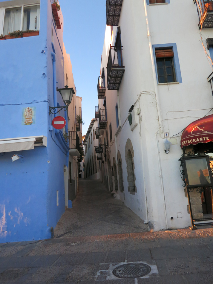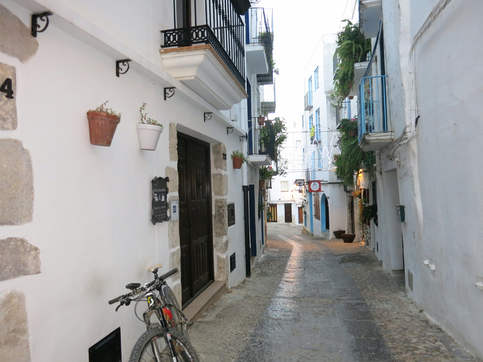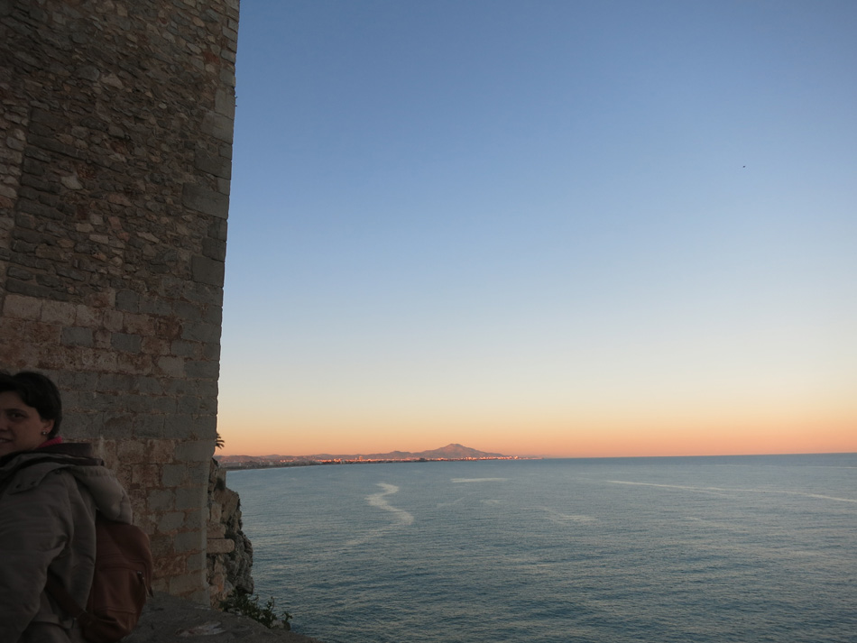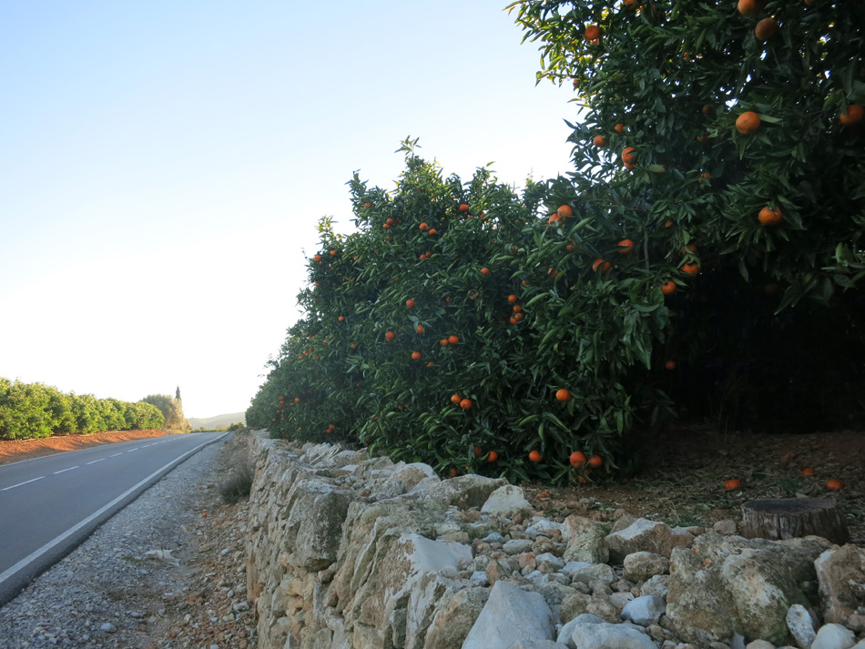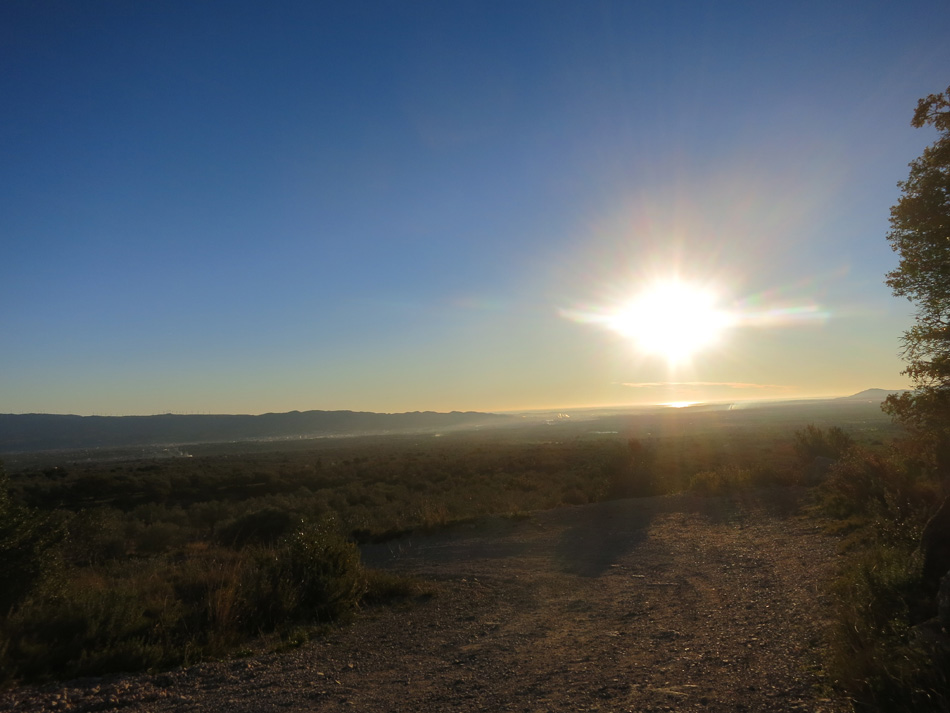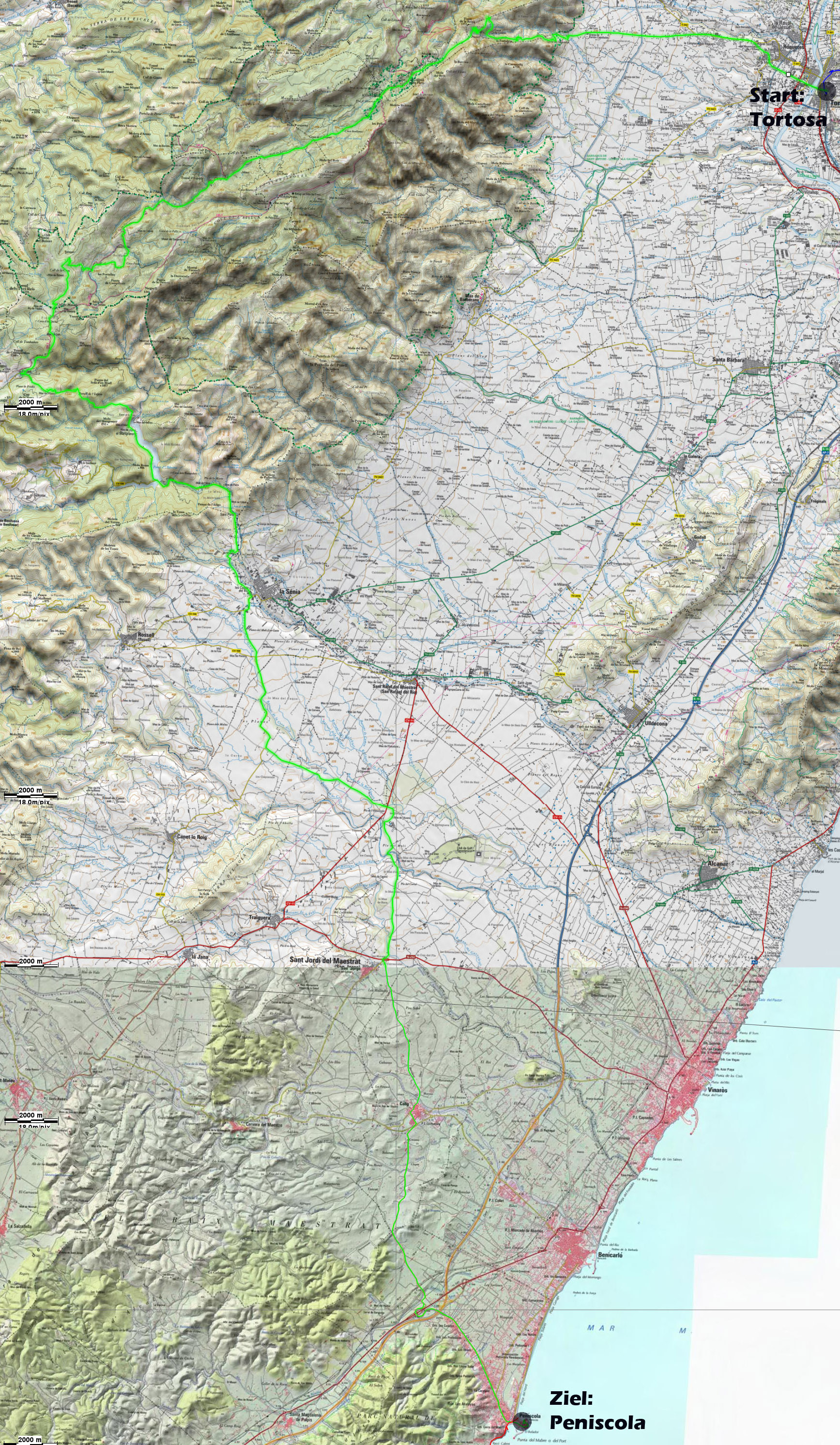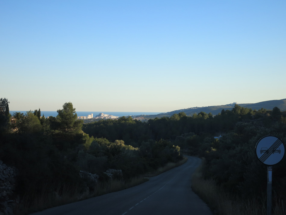 Heute morgen hätte es schon um 7 Uhr Frühstück gegeben. Das Buffet war sehr gut und um 8 Uhr bei Sonnenaufgang startete ich in Richtung El Port Gebirge. Für einmal standen 1100Höhenmeter am Stück auf einer kaum befahrenen Asphaltstraße an. Schon als ich das Hotel verließ hatte ich das Gefühl dass es am frühen Morgen schon einiges wärmer war als die letzten beiden Tagen. Dafür blies mir im Aufstieg zeitweise ein starker Westwind entgegen. Bei der Ferienhaussiedlung Los Puertos begann dann eine 24km lange Naturstrasse nach Fredes. Außer 6 französischen 4×4 Offroad Autos war hier 2 Stunden lang niemand anzutreffen. Kurz vor Fredes machte ich noch ein schönes Teilstück auf dem GR7 Wanderweg. In Fredes dem kleinen Bergdorf war nichts los. Die einzige Bar hatte geschlossen. Dafür begann hier mit der Abfahrt zum Embalse de Ulldecona das Highlight des heutigen Tages. Es war ein wunderschöner fast komplett fahrbarer historischer Wanderweg durch die Felslandschaft an den 600m tiefer liegenden Stausee. Er war sehr eindrücklich. Und diverse Schilder wiesen auf die besten Fotostellen hin. Unten am Stausee gab es dann ein großes Restaurant mit Self Service wo ich wieder Treibstoff fasste. Nun ging es die nächsten 45km auf Nebenstraßen, und Feldwegen durch Olivenhaine und Orangenplantagen zum Tagesziel Peniscola. Natürlich ließ ich es mir nicht nehmen ein Paar Mandarinen und Orangen ab Baum zu essen. Für einmal erreichte ich schon um 17Uhr einiges vor Sonnenuntergang den Etappenort. Das Zentrum auf einem Hügel, einer Art Halbinsel im Meer, war ausgesprochen schön. Man merkte dass es heute Silvester war, denn die Leute erledigten noch die letzten Sachen und verkrochen sich nach Hause. Hotels hatte es sehr viele doch fast alle waren geschlossen und einige Ausgebucht. Schlussendlich bekam ich noch am Rande der Altstadt ein Zimmer welches ich auf Booking.com fand. Das letzte.... Um 19 Uhr waren dann die Straßen fast ganz menschenleer und der glückliche Zufall wollte es dass gerade eines der noch ganz wenigen geöffneten Restaurants neben dem Hotel war wo es Italienisches Essen gab. Um 22Uhr fasste ich den Entschluss noch Billette zu organisieren um morgen Nachmittag von Orpesa mit dem Zug die Heimfahrt anzutreten. Beim Ersten Billet bis Barcelona hat die Buchung geklappt doch dann habe ich etwas falsch gemacht so dass die Kreditkarte nun Blockiert ist. Um Mitternacht wurde ich durch das geballer von Feuerwerk noch ganz kurz wach... schlief dann aber wieder tief weiter....