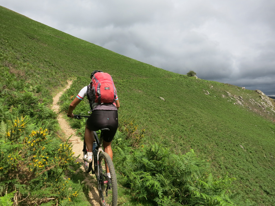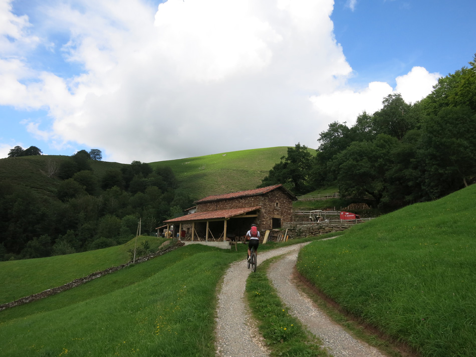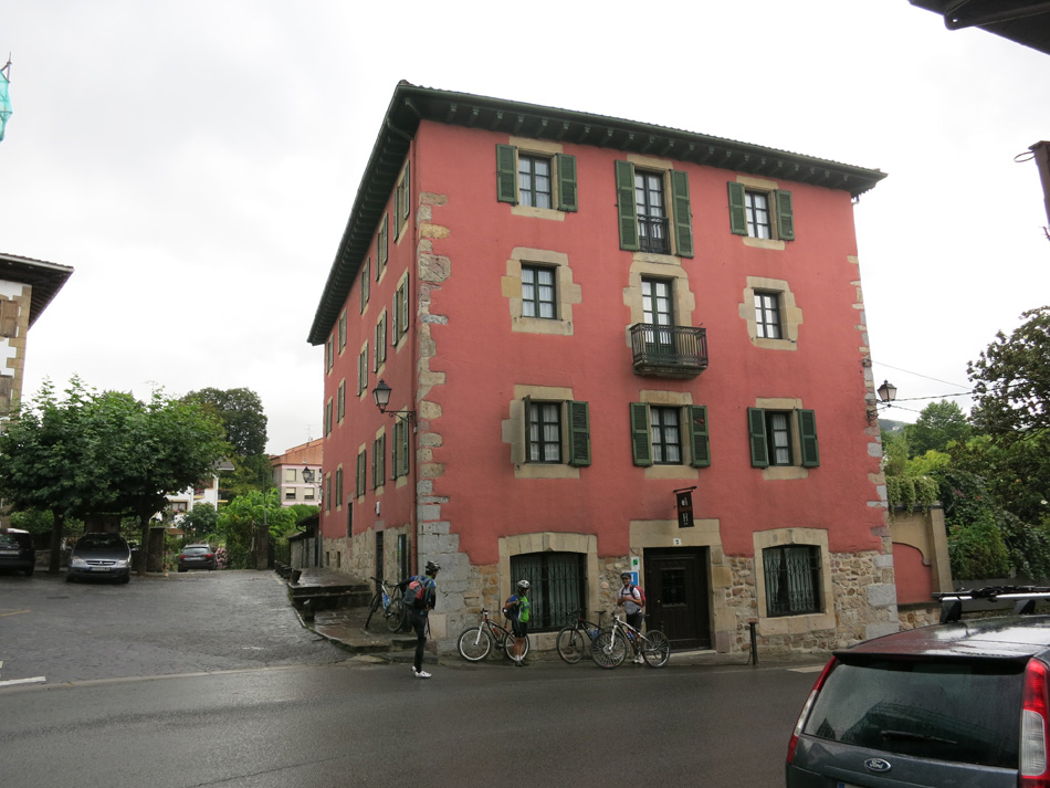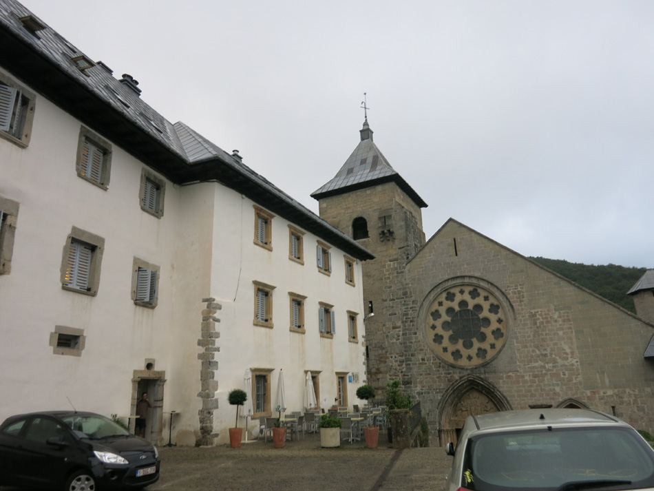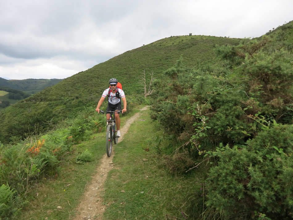 Heute morgen gab es 8.00uhr ein gutes Frühstück. Danach ging es gegen 9Uhr los. Da wir dem Wetter nicht ganz trauten ließen wir die Zusatzrunde auf den La Rhune aus und fuhren direkt auf dem GR 11 Wanderweg zum Col de Lizarieta. Ebenfalls auf dem GR 11 ging es dann weiter nach Elizondo. Es war ein Wunderbarer Weg der vor allem durch die Farn Pflanze geprägt war. Am Dorfrand von Elizondo war dann für meine Schwester Marianne fertig. Sie war kurz unaufmerksam und stürzte so unglücklich dass sie sich eine Rippe brach. Ein netter Autofahrer fuhr sie dann ins Centro Saludat...eine Art einfachst Krankenhaus. Dort war man schlecht eingerichtet, so dass sie von Der Ambulanz in die 50km entfernte Stadt Pamplona gefahren wurde. Leo Begleitete sie. Ihre Bikes ließen wir im Keller des Dorfkrankenhauses einschließen. Ich und Florian mussten die heutige Etappe nun selbst fortsetzten. Es gab noch einen hübschen Abstecher nach Frankreich. In Aldunes begann dann der letzte lange Aufstieg zum Lindus. Leider begann es dann noch 30min vor dem Ziel heftig zu regnen. Um ca. 18.30 Uhr erreichten wir das wunderbare Klosterhotel Roncesvalles. In diesen Minuten wird auch Leo und Marianne mit einem Taxi zu uns kommen. Ob Marianne die Tour fortsetzen kann wird sich morgen Zeigen