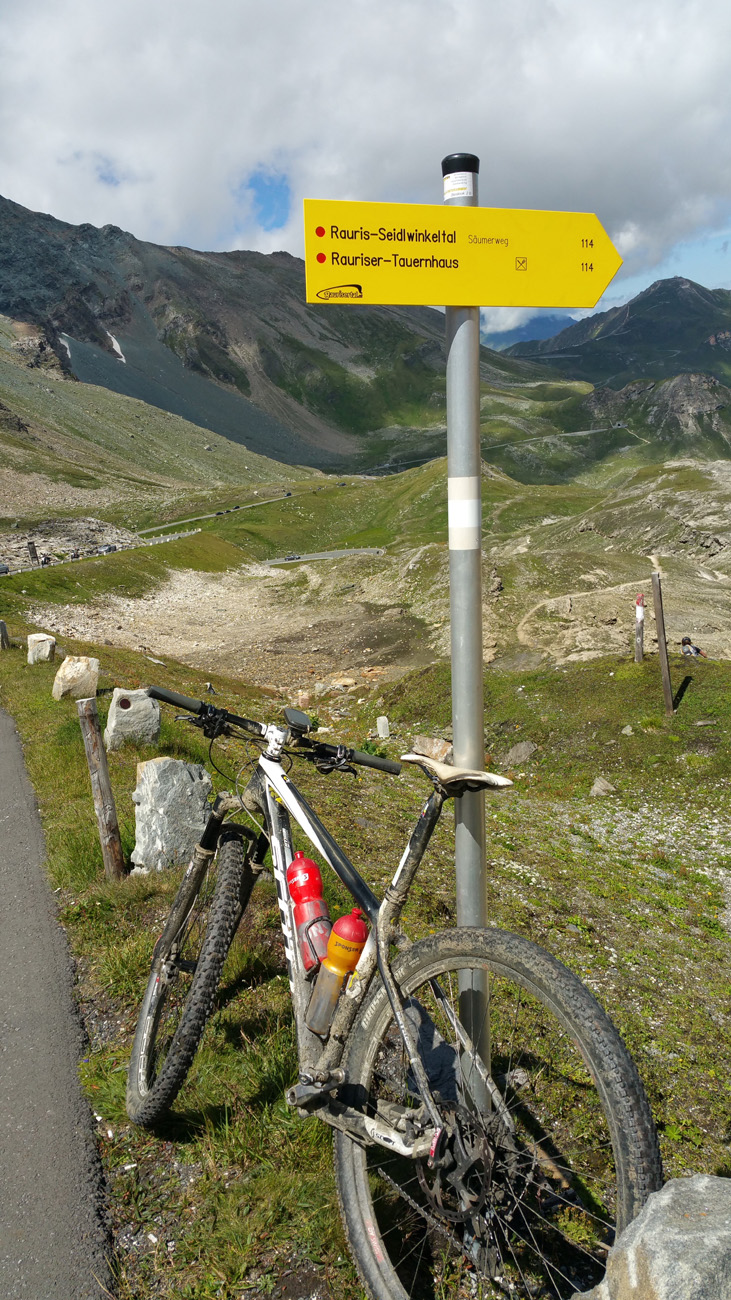 Heute Morgen ging es um 8Uhr los. Zuerst ging es auf einem Fahrweg bis 2200 min in Richtung Beger Törl. Dann mündete die Fahrstrasse in einen Pfad der jedoch von sehr guter Qualität war so dass ich die Restlichen 400Höhenmeter bis zur Glorer Hütte auch fahren konnte. Die Abfahrt in Richtung Heiligenblut war fast durchwegs fahrbar mit ultimativ schönen Abschnitten. Um 11 Uhr suchten wir dann in Heiligenblut noch einen Supermarkt auf und setzten dann die Fahrt in Richtung Hochtörl (Grossglockner) fort. Etwa die Hälfte des Aufstieges konnten wir auf der alten verkehrsfreien Strasse machen. Um 13.15Uhr durchquerten wir dann den Scheiteltunnel und bogen danach in den Wanderweg zur Litzelam im Rauristal ein. Etwa die Hälfte dieser 800hm umfassenden Abfahrt war gut fahrbar. Unterwegs sah uns dann noch ein Herr welcher behauptete er sei hier Grundeigentümer und er dulde keine Radfahrer....ich liess ihn labern....und fuhr dann ausserhalb seines Blickfeldes wieder weiter. Etwa um 14.30Uhr kehrten wir dann noch im Rauriser Tauernhaus ein. Es war wunderschön und so etwas wie eine Mischung zwischen Museum um Gaststätte. Danach ging es gestärkt Tal auswärts Richtung Rauris und Taxenbach. Kurz vor 17 Uhr nahmen wir dann den Schlussaufstieg von Gries (750m ü M) zum auf 2117m Hohen Hundstein in Angriff. Etwa bei Halbzeit kehrten wir dann noch in der Moosalm ein. Um 19.15Uhr war dann das Statzerhaus auf dem Gipfel erreicht. Es ist eine einfache Hütte aber Essen und etwas Strom gab es. Besonders die Aussicht in alle Himmelsrichtungen ist großartig.