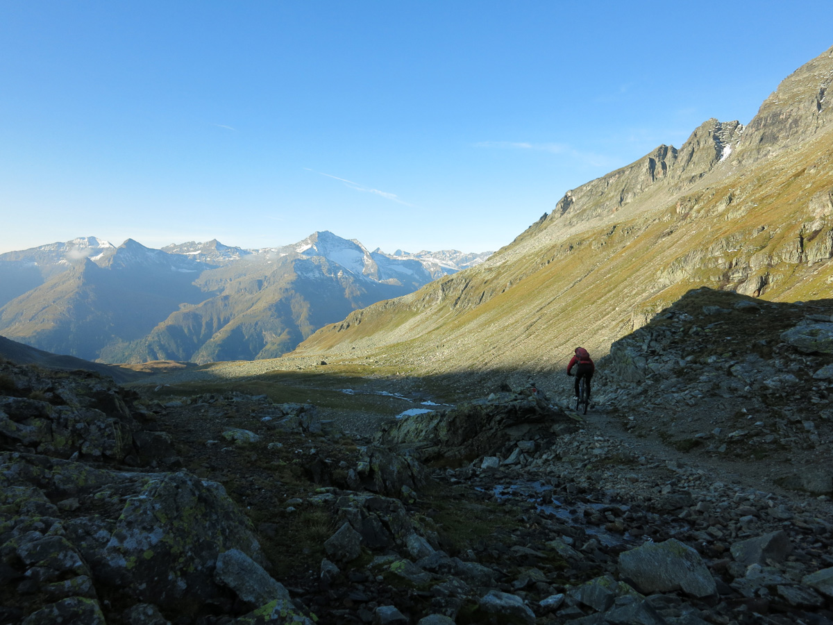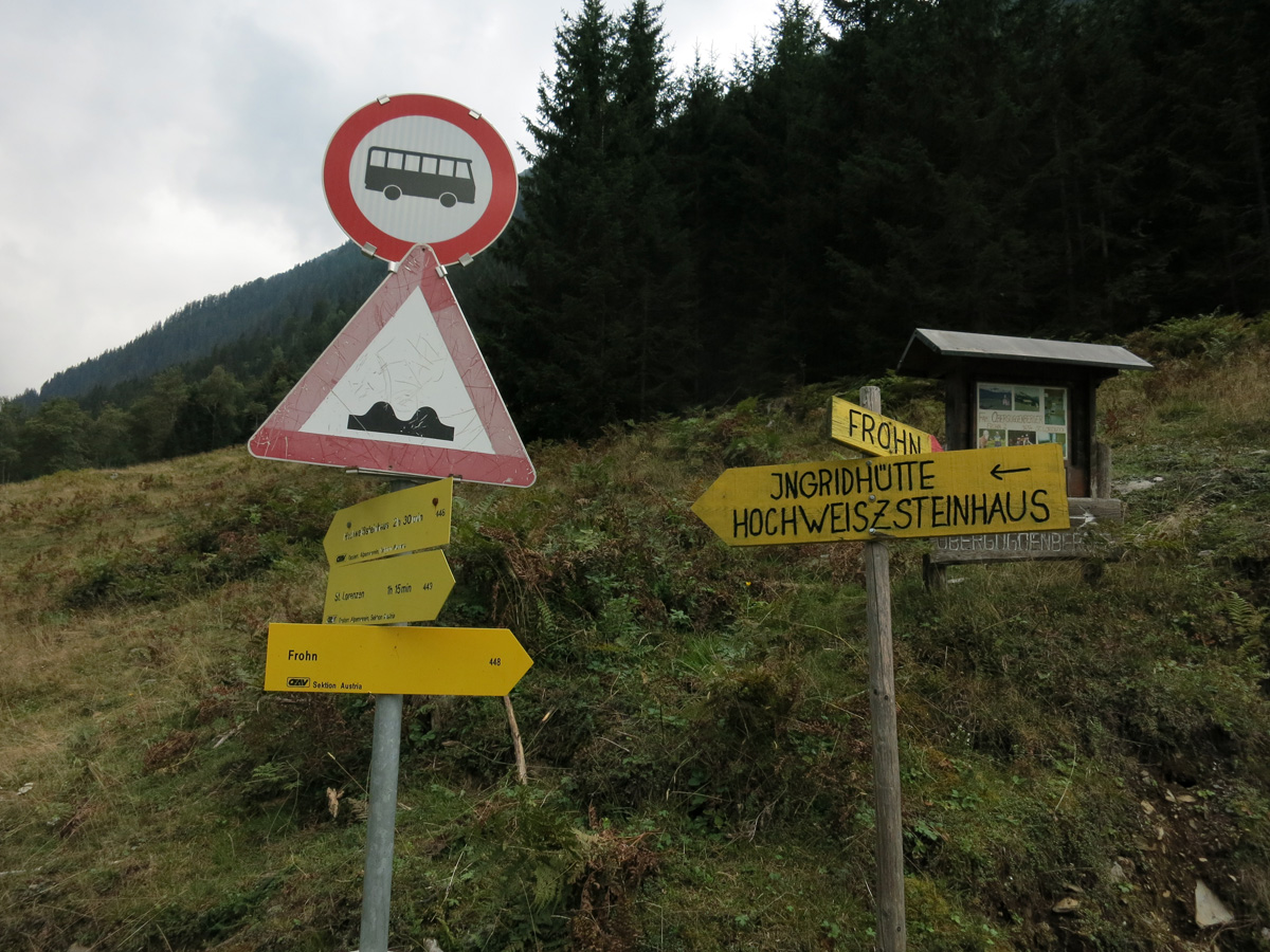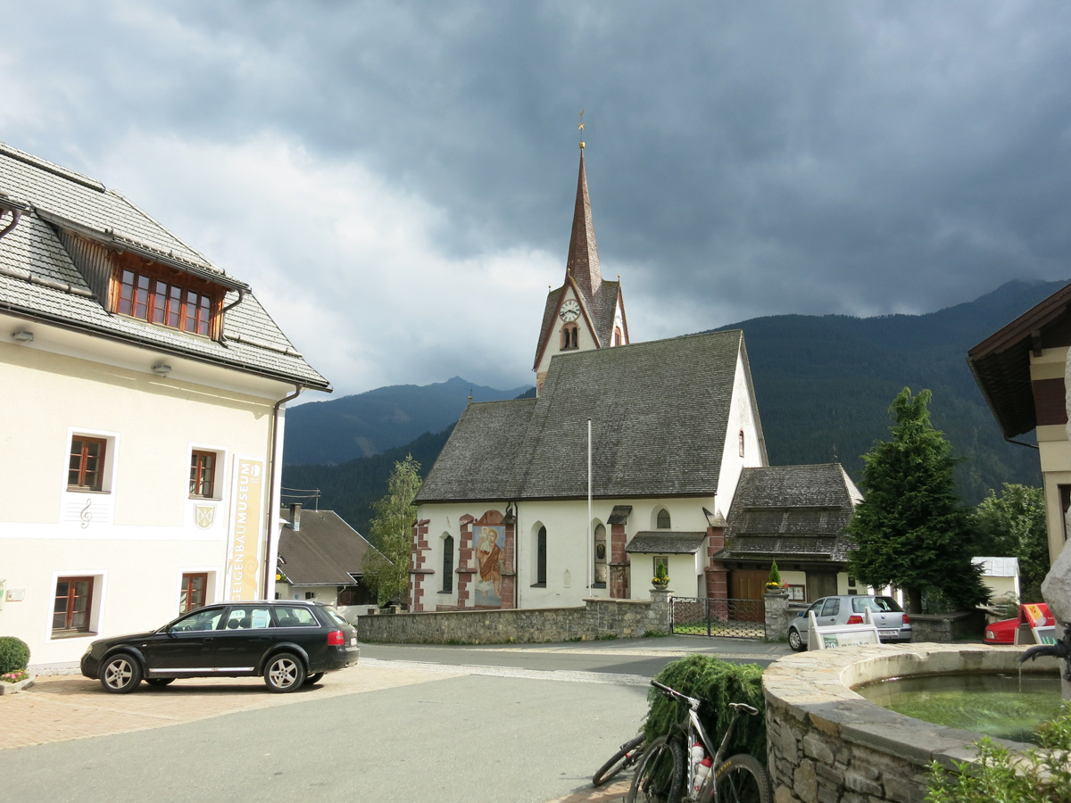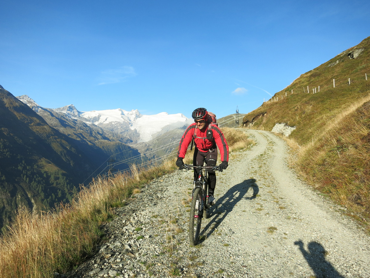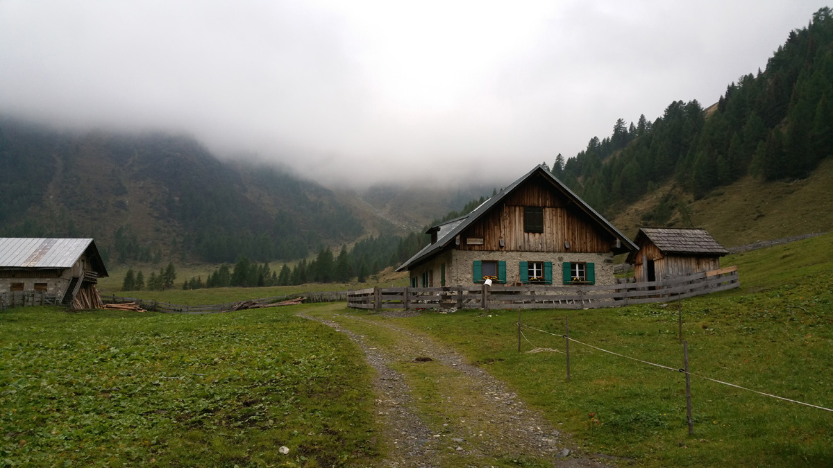 Nach einem spärlichen Frühstück ging es heute morgen um 8Uhr von der Hütte auf 2482m ü M los. Es herrschte strahlenden Sonnenschein. Etwa 10min mussten wir bis zum Beginn der Fahrstrasse auf 2350m laufen. Diese neue Fahrstraße führte zum schönen Matreierhaus hinunter. Von dort aus folgten wir dem Wanderweg nach Matrei hinunter. Es gab da ganz schöne Trailabschnitte welche auch von Motorradfahrern benutzt wurden. Danach ging es 30km auf dem Radweg nach Lienz. Dort suchten wir um 11.30Uhr ein Restaurant für die Mittagspause auf. Danch ging es meist auf Kieswegen der Drau entlang nach Oberdrauburg. Hier nahmen wir dann die Passtrasse zum Gailbergsattel. Über den Röten auf 1290m ging es dann nach St. Jakob im Leschachtal. Auf der mit Gegensteigungen aufweisenden Strasse ging es hinauf nach St. Lorenzen. Um 16.30Uhr nahmen wir dort den Schlussaufstieg zum Hochweissteinhaus unter die Räder. Auf 1700m am Ende der Fahrstraße begann es dann zu Regnen. Die Letzten 150Höhenmeter mussten wir dann noch Wandern.
