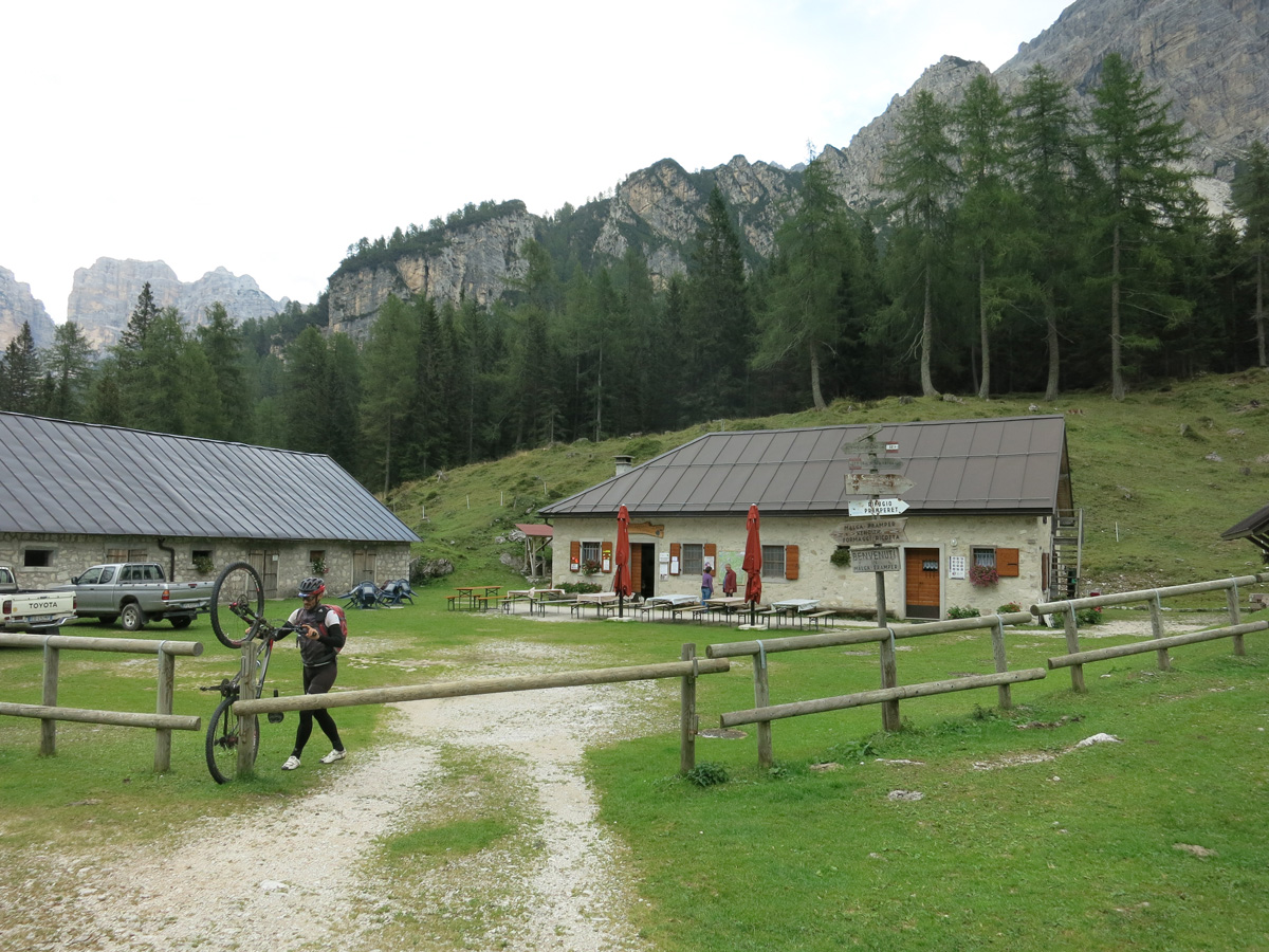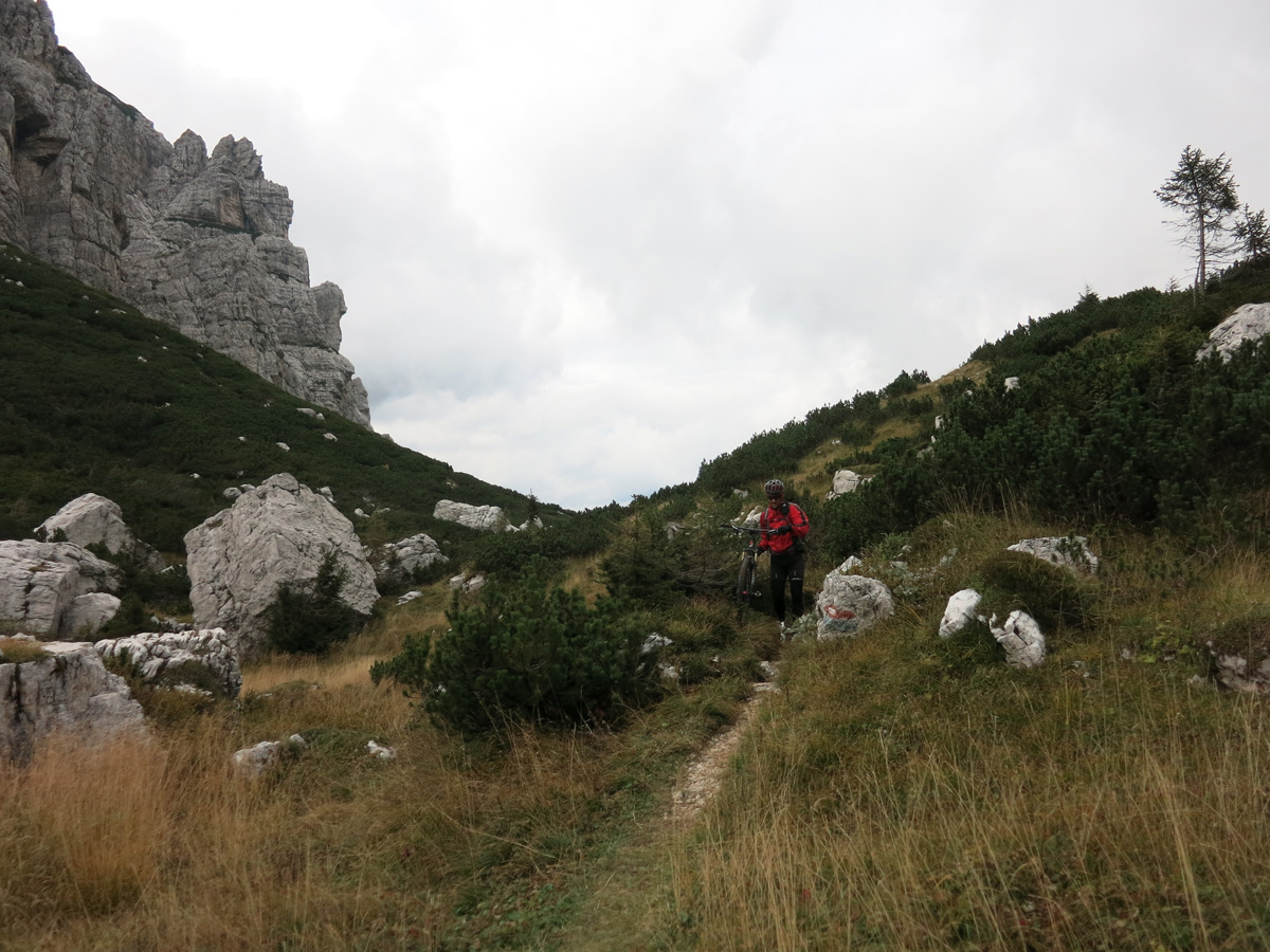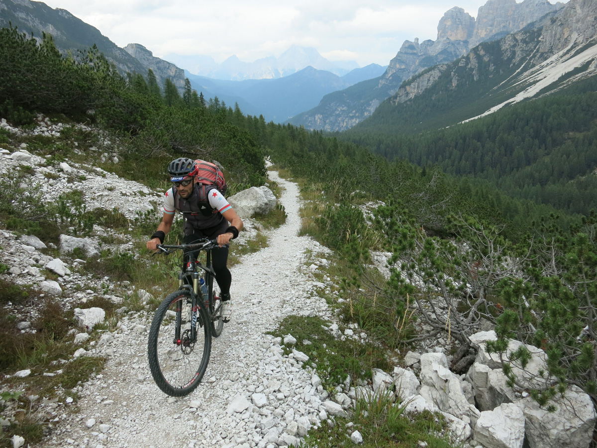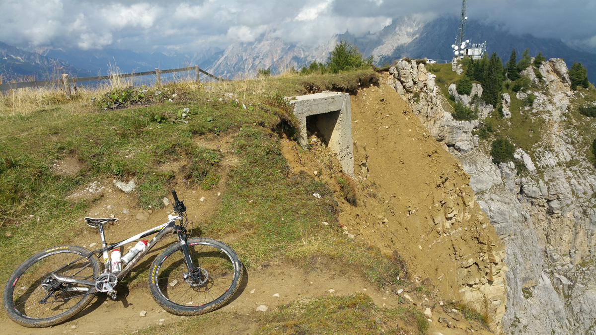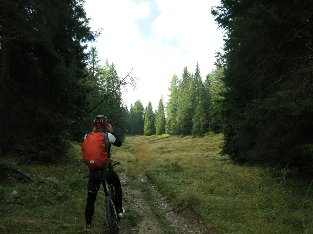 Die Highlight waren heute mal die Abfahrt vom Rifugio Baion nach Calalzo die Cadore hinunter, das nachfolgende Bahntrasse der ehemaligen Dolomitenbahn, das Mittagessen auf dem Monte Rite und zu guter Letzt der fast komplett fahrbare Militärtrail über die Forcella Moscheschin.