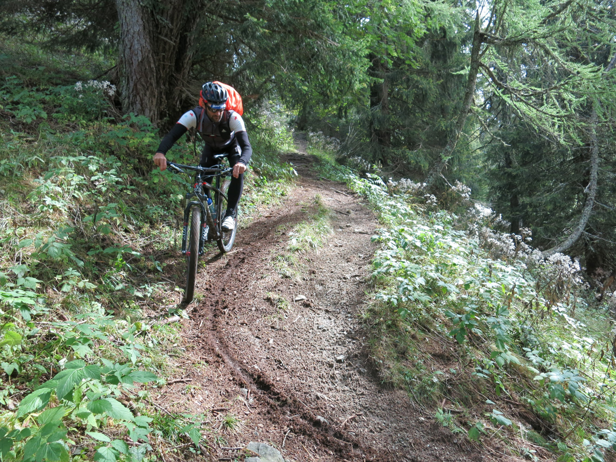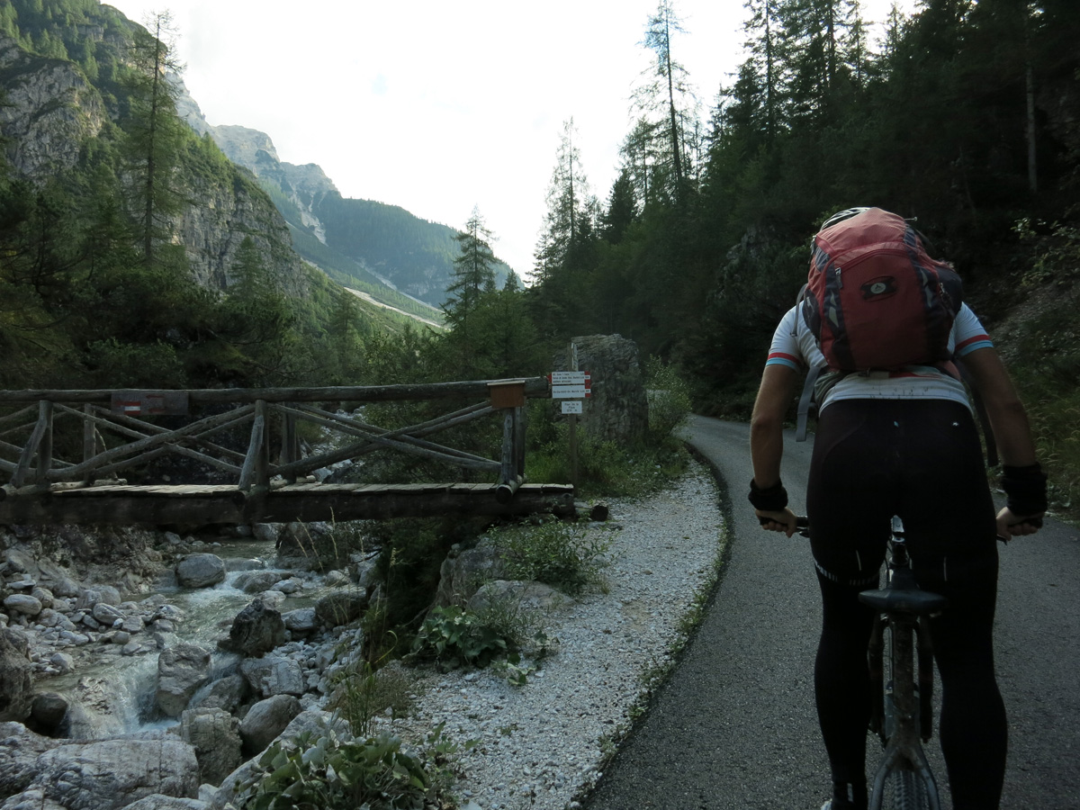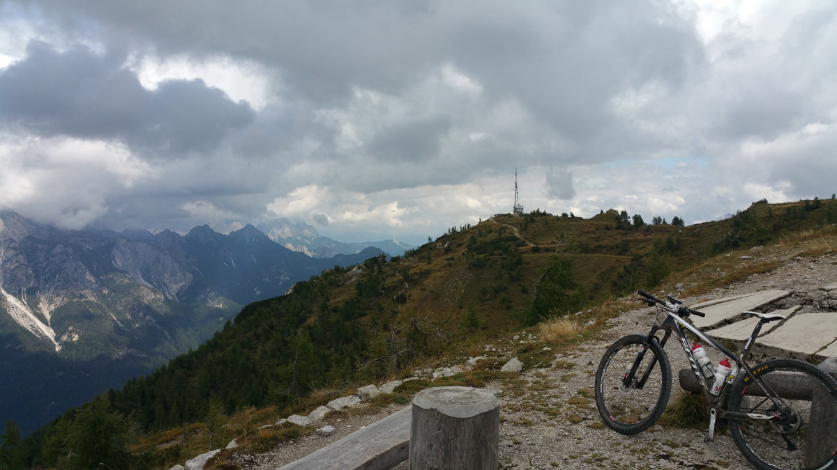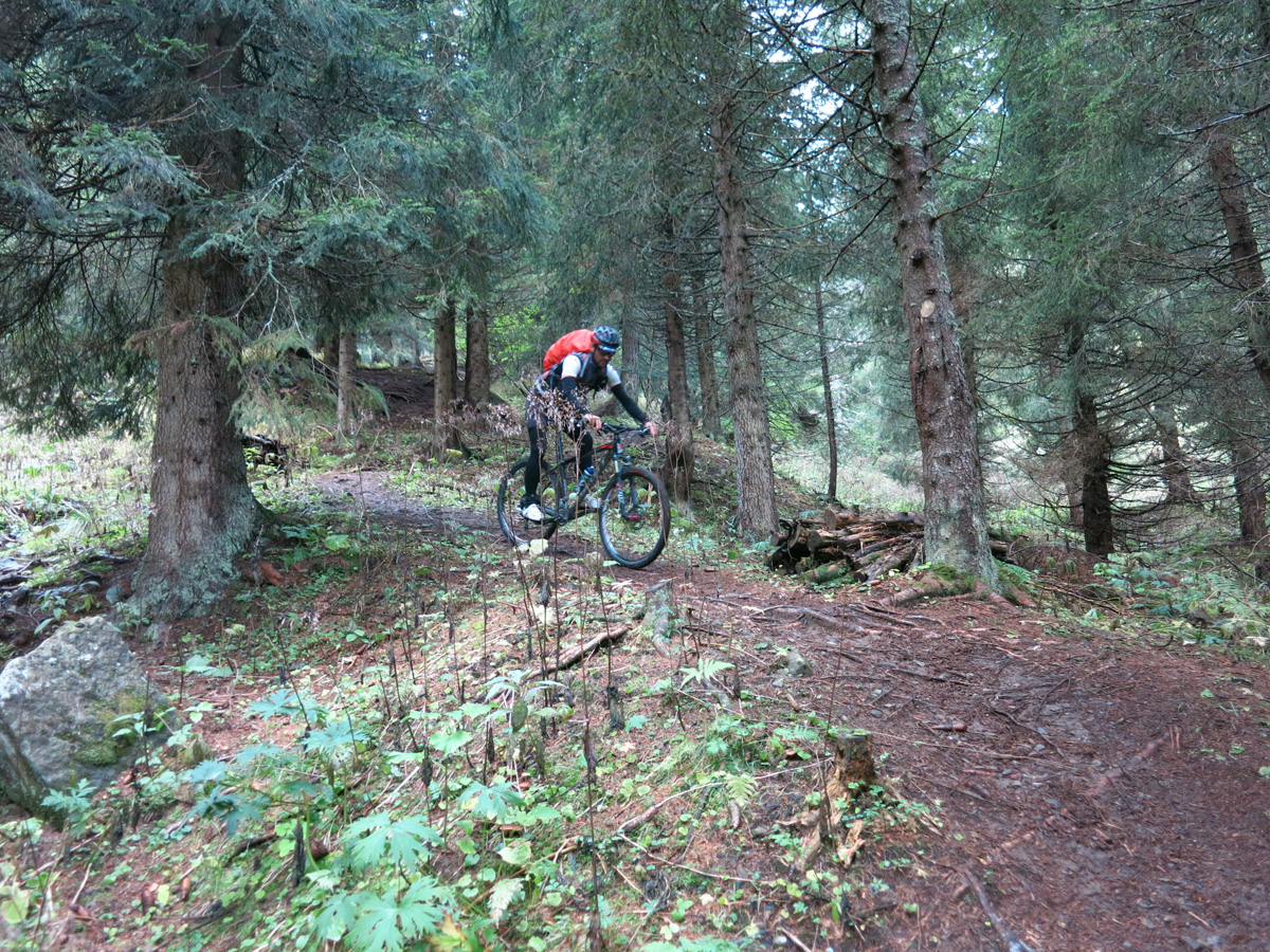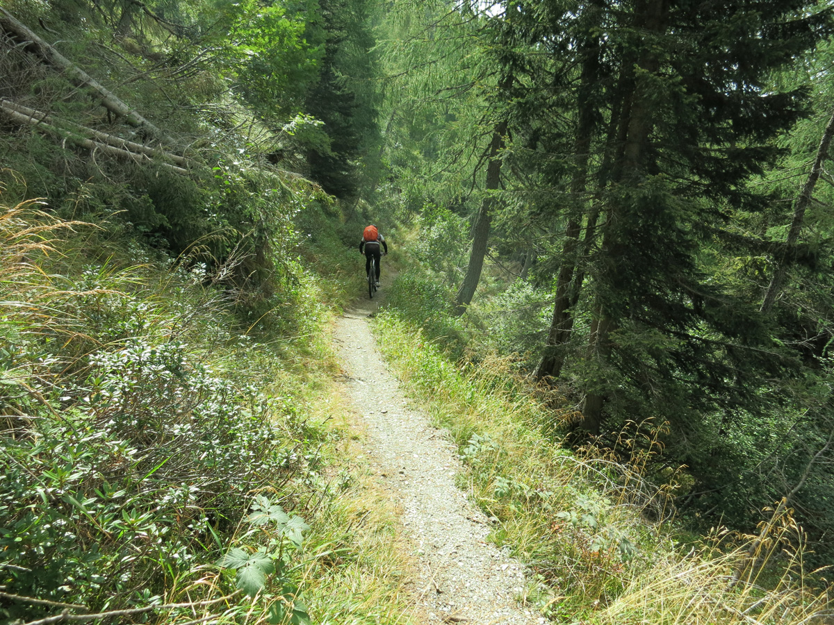 Die Highlight waren heute mal die Abfahrt vom Rifugio Baion nach Calalzo die Cadore hinunter, das nachfolgende Bahntrasse der ehemaligen Dolomitenbahn, das Mittagessen auf dem Monte Rite und zu guter Letzt der fast komplett fahrbare Militärtrail über die Forcella Moscheschin.