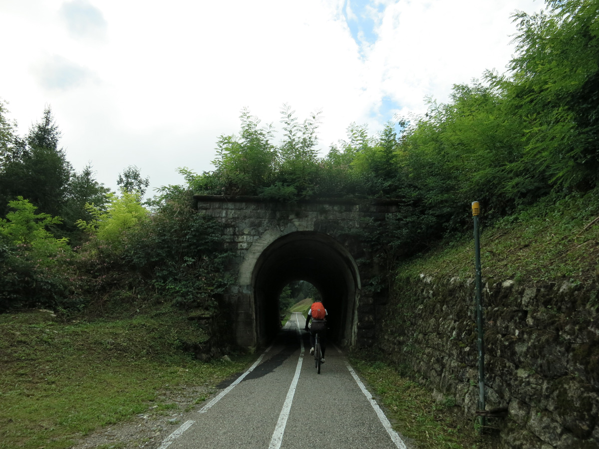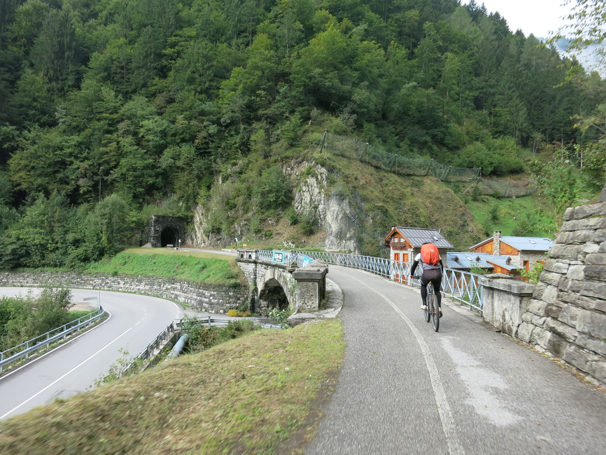 dem ehemaligen Bahntrasse der Dolomitenbahn welche von Calalzo di Cadore nach
