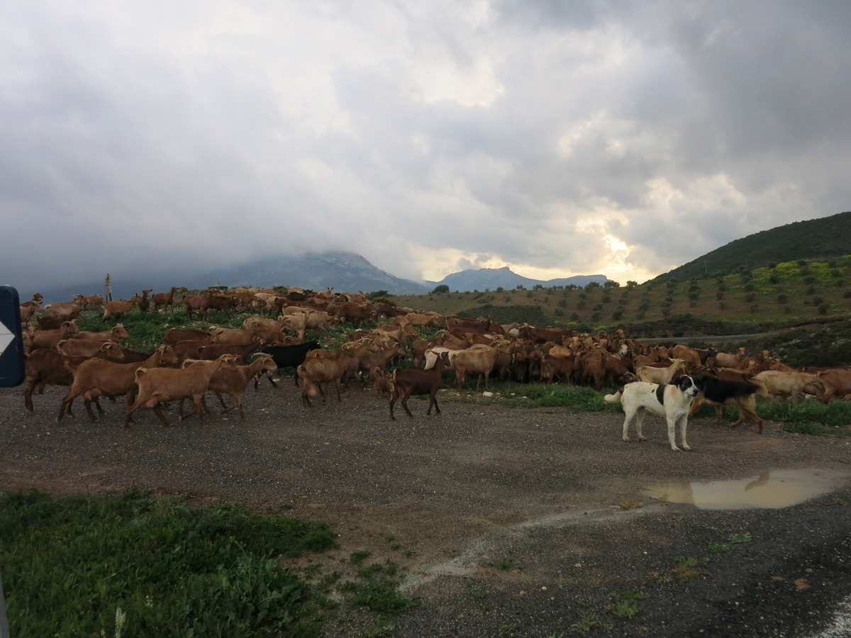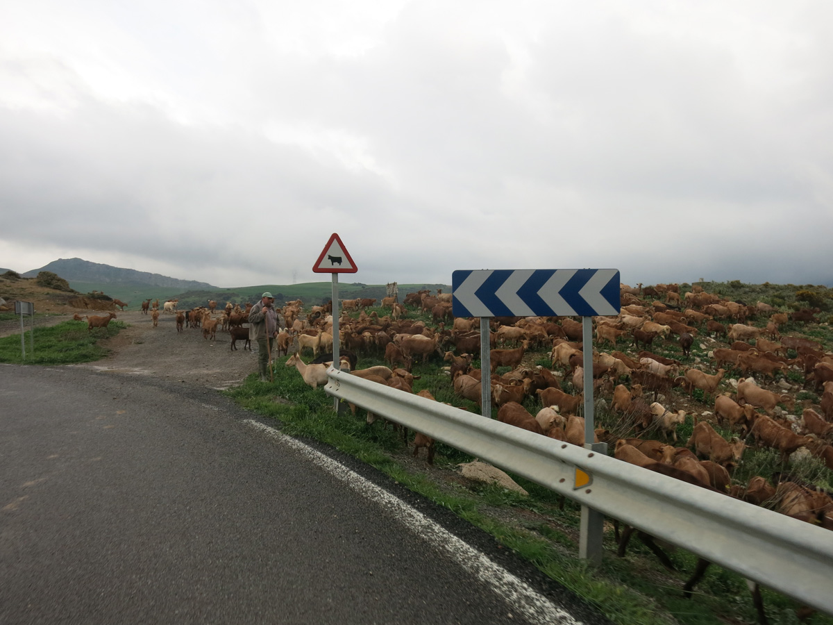 Ziegenherde auf der Hauptstrasse nach Antequera 30 min vor dem Tagesziel