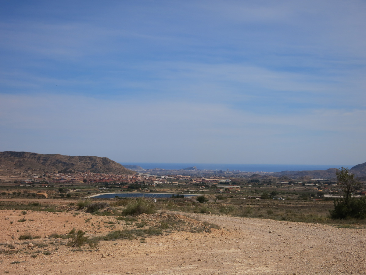 Bahntrasse von Agost nach Maigmó, Blick auf Agost und Alicante im Hintergrund