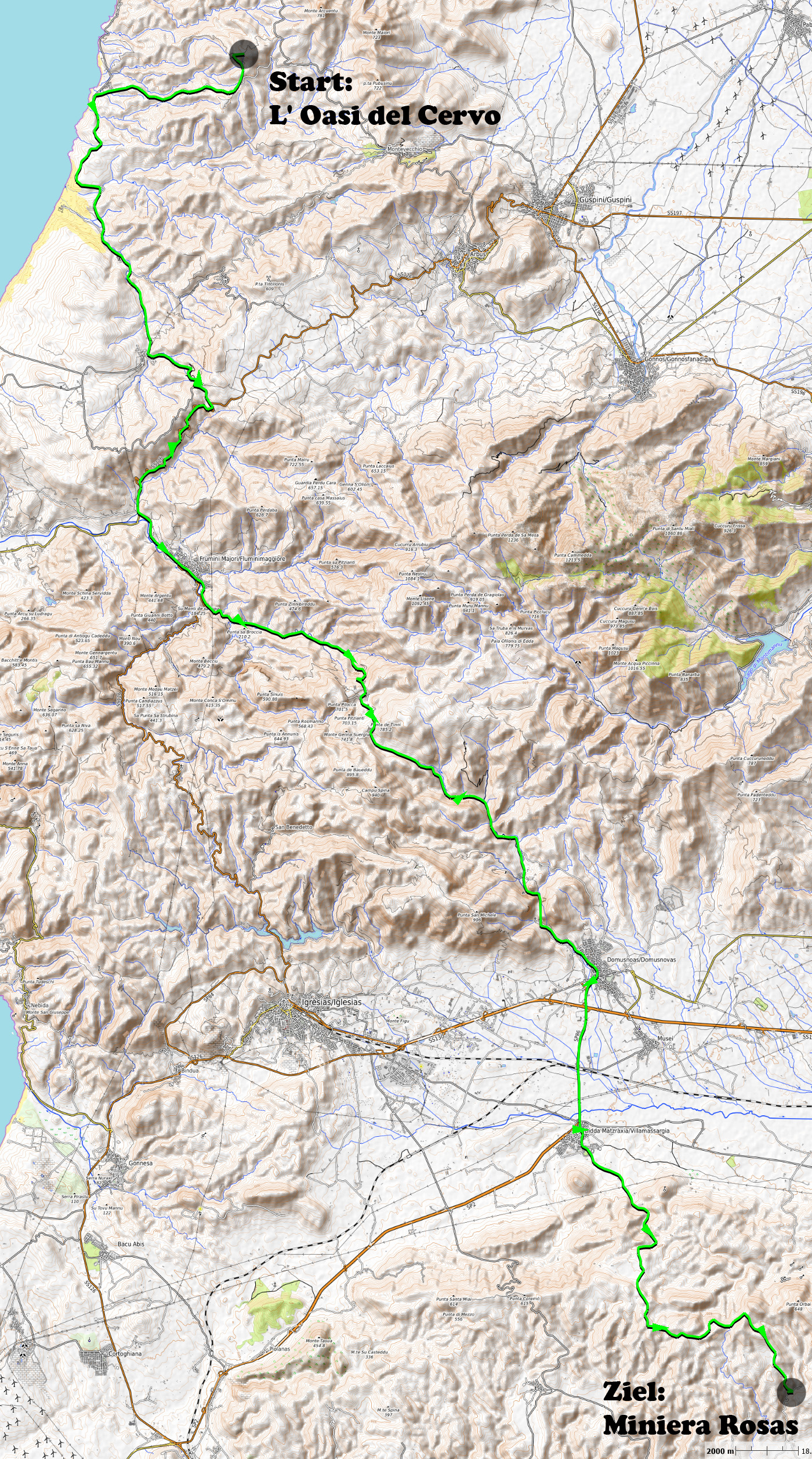 Heute Morgen gab es um 7.30 Uhr in unserem Agritourismo ein sehr gutes Morgenessen. Etwa um 8.30Uhr starteten wir dann mit der Abfahrt an die Costa Verde hinunter. Dort mussten wir dann noch die erste Platte flicken bevor es weiter gehen konnte. Danach gab es noch 2 bis 3km auf dem Asphalt und dann folgte eine dank 2 Bachdurchquerungen verkehrsberuhigte Sandpiste. Nach etwa 4km auf dieser Piste bogen wir dann in eine Seitenstrasse ab die mit einem rostigen Tor abgesperrt war. Sie war von guter Qualität und führte an einer Art Gefängnis vorbei. Beim Verlassen dieses Geländes entdeckten wir dann noch ein Paar Warnschilder, die auf eine Bewaffnete Bewachung hinwiesen. Auf einer stellenweise ausgewaschenen aber meist noch gut fahrbaren Piste ging es dann hinauf zur Vecchia Miniera di Gennamari. Dort nahmen wir dann die Hauptstrasse nach Fluminimaggiore hinunter. Hier begannen wir dann kurz nach 11 Uhr mit dem nächsten Aufstieg zur Miniera di Arenas. In diesem Aufstieg mussten wir an ausgewaschenen Stellen des Karrenweges etwa 10min Laufen. Ansonsten führte dieser Fahrweg durch eine total urtümliche Landschaft und war ausgesprochen schön. Auf dem Pass, welchen wir um 13 Uhr erreichten waren dann die Spuren des Bergbaus nicht zu übersehen. In der Abfahrt war dann die Naturpiste wieder knapp autobefahrbar. Kurz vor Domusnovas gab es mit der Durchquerung der Grotta di San Giovanni das grösste Highlight des heutigen Tages. Dieser ca. 800m lange Tropfsteinhöhlen Tunnel war zwar offiziell noch gesperrt, aber die Absperrung wurde schon längst niedergedrückt und von den Leuten Ignoriert. Leider war nur etwa jede zweite Lampe im Tunnel in betrieb, aber auch so sahen wir die Schönheiten. Um 13.45Uhr kehrten wir dann in Domusnovas fürs Mittagessen in einer Bar ein. Danach folgte ein Flachstück nach Villamassargia wo dann der letzte Aufstieg des heutigen Tages auf einer Piste zur Serra su Finugu begann. Um ca. 15.30Uhr war dann auch dieser Punkt auf gut 500m ü M erreicht. Die schöne Naturstrasse ging nun leicht abfallend weiter zur Miniera di Rosas. Um 16Uhr checkten wir dann dort für unser Appartement ein. Es gab dann noch einen kurzen Spaziergang durch dieses ehemalige Industriegelände. Um 19Uhr gingen wir dann an die Bar/ Pizzeria zum Abendessen. Die Pizzas waren äußerst preiswert und ausgesprochen fein. Nur ausser Pizzas gab es nichts zu essen.....