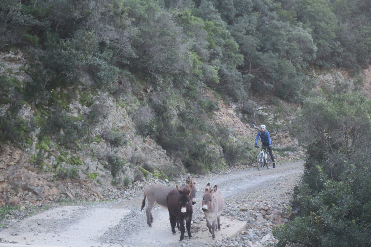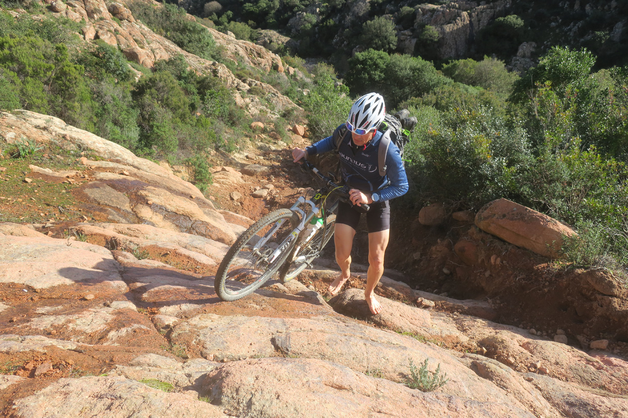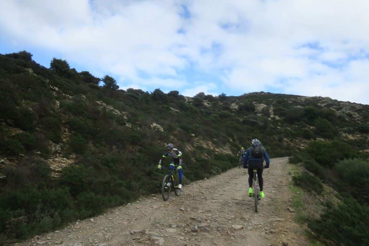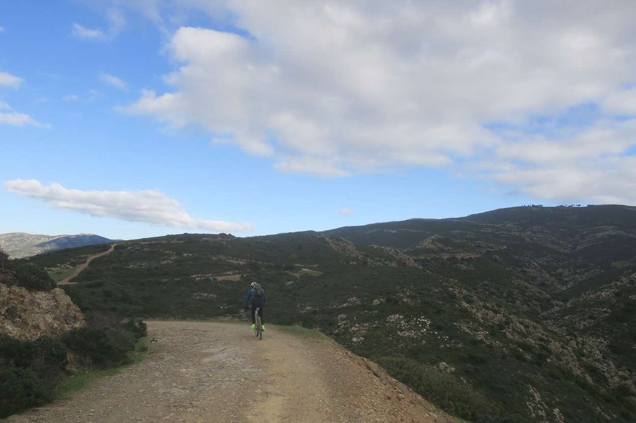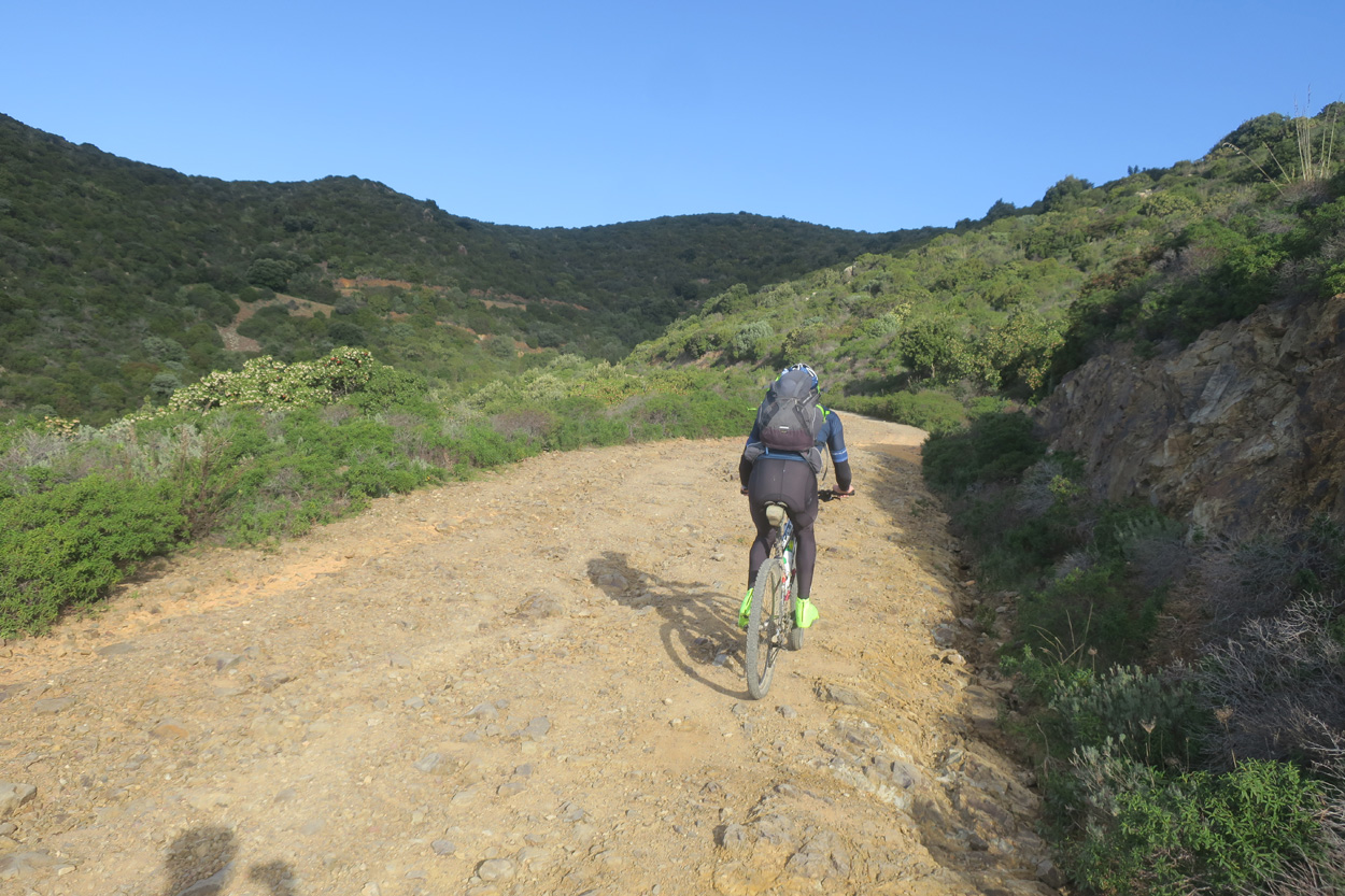 Heute Morgen gingen wir um 7.30Uhr an das sehr gute und reichhaltige Frühstücksbüffet. Um 8.30Uhr begannen wir dann die heutige Etappe mit einer Zusatzschlaufe zum Castell der Altstadt von Cagliari. Danach mussten wir durch die Vororte von Cagliari radeln. In Sinnai war es dann für den Rest des Tages fertig mit der urbanen Zivilisation. Auf einer teilweise eher groben Piste ging es dann auf den Monte Tronu auf 932m hinauf. Danach folgten diverse Pisten von unterschiedlicher Qualität bis an die Ostküste. Im Bereich von Arcu Sa Murta gab es eine Bachdurchquerung mit nassen Füssen und eine Laufpartie von Ca. 15min. Der Rest dieser schier endlosen Wildnis war einmalig schön und gut fahrbar. Um 16.15Uhr erreichten wir dann die Ortschaft S. Vito. Uns ist dabei aufgefallen, dass an diesem Silvesternachmittag schon alle Geschäfte geschlossen waren. Teilweise auf Karrenwegen mit Bachdurchquerungen durch Furten ging es dann weiter nach Villaputzu. Hier hatten wir dann das Glück auf einen noch offenen Discounter zu treffen. Da wir noch nicht wussten ob es heute Abend irgendwo was zu Essen gäbe, deckten wir uns hier zur Sicherheit mit ausreichend Proviant ein. Um 17.15 Uhr erreichten wir dann das B&B in einem neuen Wohnquartier etwas ausserhalb der Ortschaft. Die Besitzerfamilie war äußerst hilfsbereit und freundlich. Sie organisierte uns ein Silvestermenü, dass wir von einem Restaurant abholen konnten.