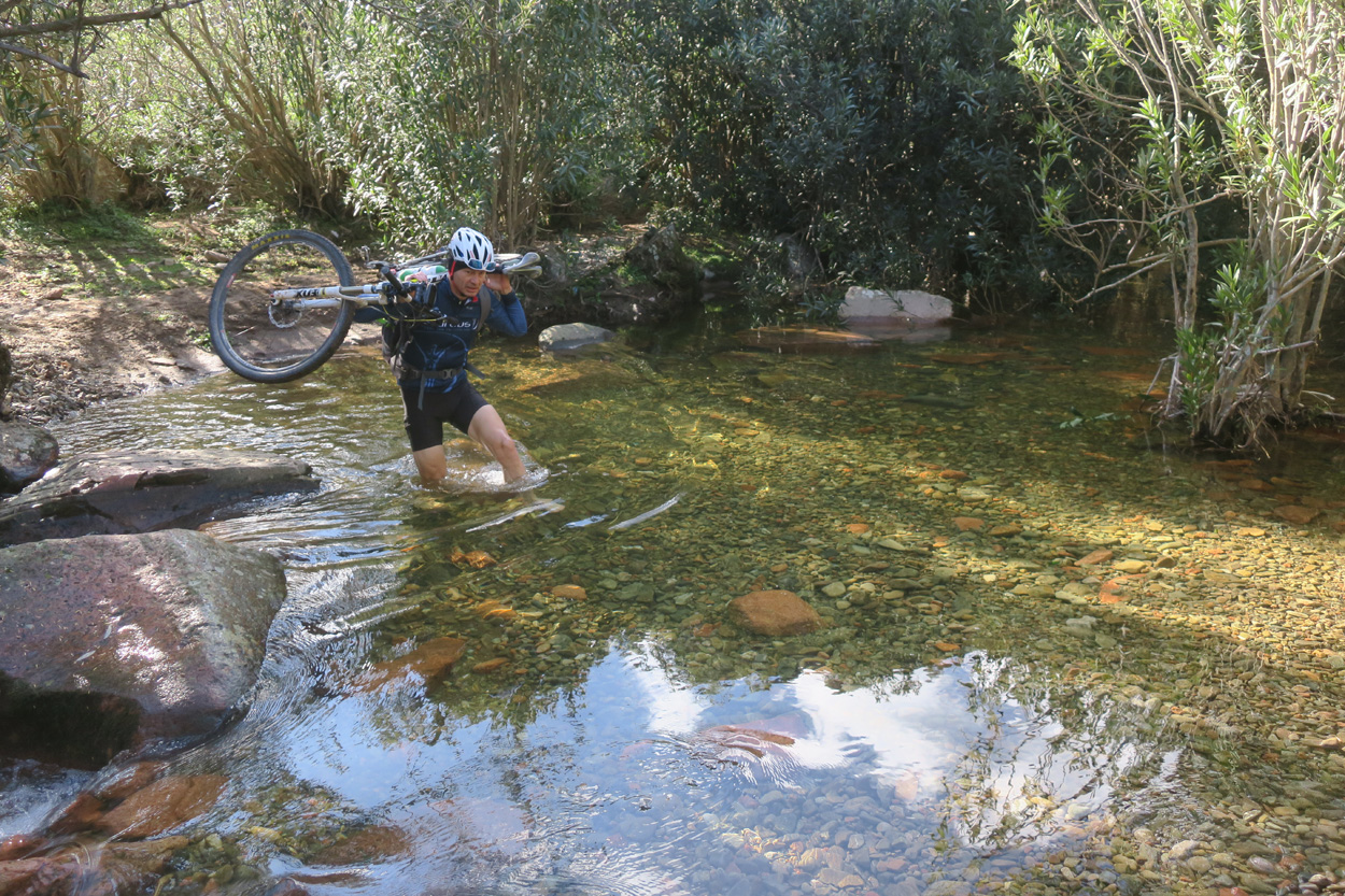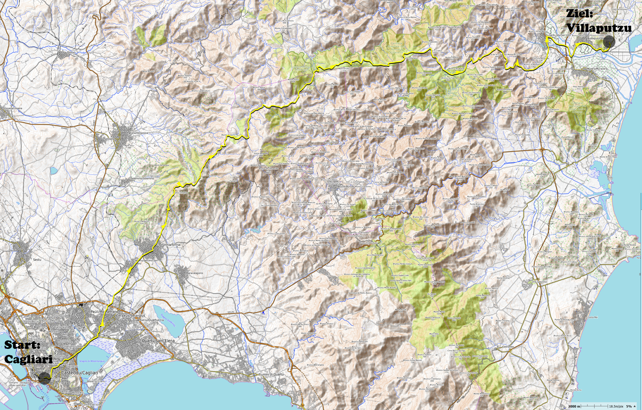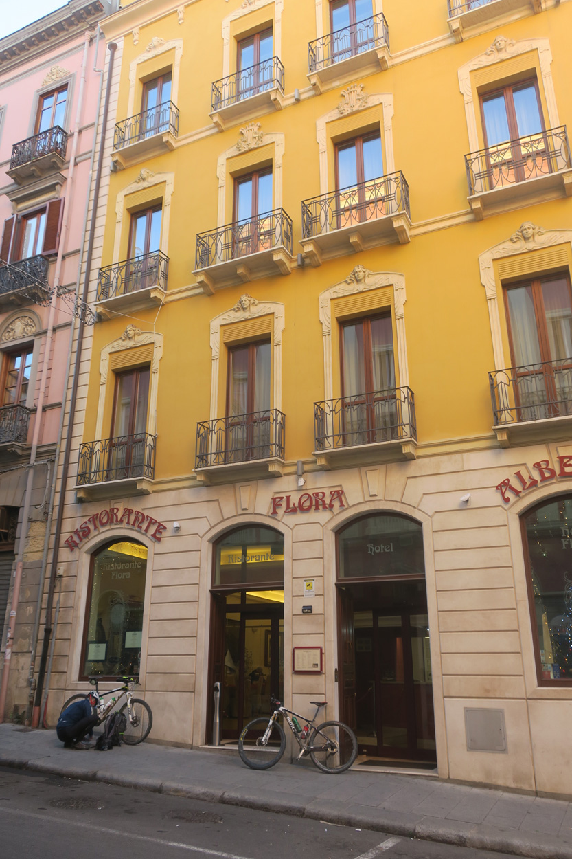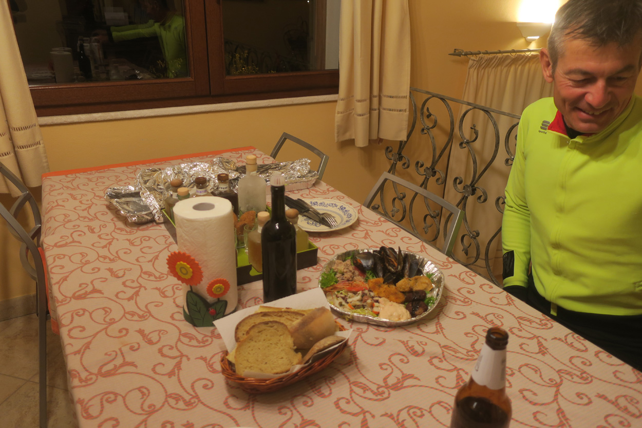 Heute Morgen gingen wir um 7.30Uhr an das sehr gute und reichhaltige Frühstücksbüffet. Um 8.30Uhr begannen wir dann die heutige Etappe mit einer Zusatzschlaufe zum Castell der Altstadt von Cagliari. Danach mussten wir durch die Vororte von Cagliari radeln. In Sinnai war es dann für den Rest des Tages fertig mit der urbanen Zivilisation. Auf einer teilweise eher groben Piste ging es dann auf den Monte Tronu auf 932m hinauf. Danach folgten diverse Pisten von unterschiedlicher Qualität bis an die Ostküste. Im Bereich von Arcu Sa Murta gab es eine Bachdurchquerung mit nassen Füssen und eine Laufpartie von Ca. 15min. Der Rest dieser schier endlosen Wildnis war einmalig schön und gut fahrbar. Um 16.15Uhr erreichten wir dann die Ortschaft S. Vito. Uns ist dabei aufgefallen, dass an diesem Silvesternachmittag schon alle Geschäfte geschlossen waren. Teilweise auf Karrenwegen mit Bachdurchquerungen durch Furten ging es dann weiter nach Villaputzu. Hier hatten wir dann das Glück auf einen noch offenen Discounter zu treffen. Da wir noch nicht wussten ob es heute Abend irgendwo was zu Essen gäbe, deckten wir uns hier zur Sicherheit mit ausreichend Proviant ein. Um 17.15 Uhr erreichten wir dann das B&B in einem neuen Wohnquartier etwas ausserhalb der Ortschaft. Die Besitzerfamilie war äußerst hilfsbereit und freundlich. Sie organisierte uns ein Silvestermenü, dass wir von einem Restaurant abholen konnten.