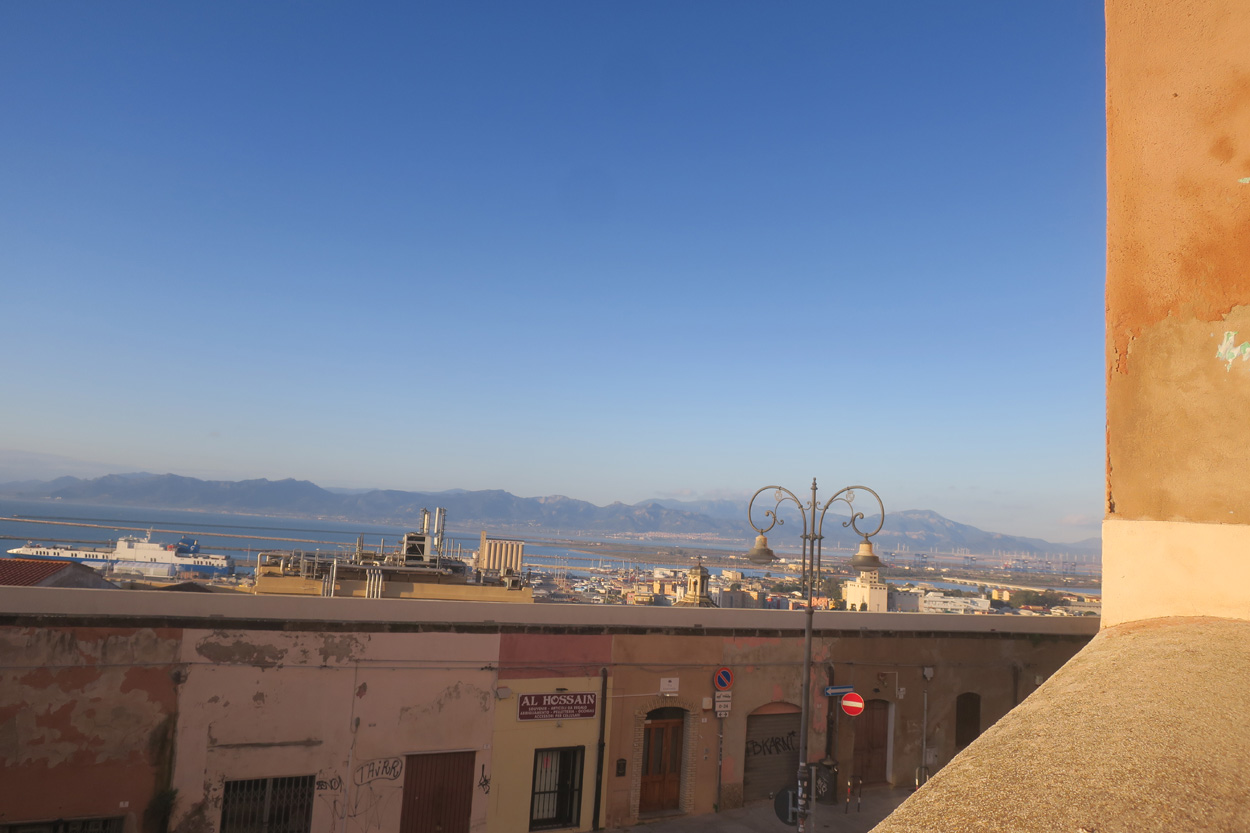 im Aufstieg zur Kathederale von Cagliari, Blick zum Hafen