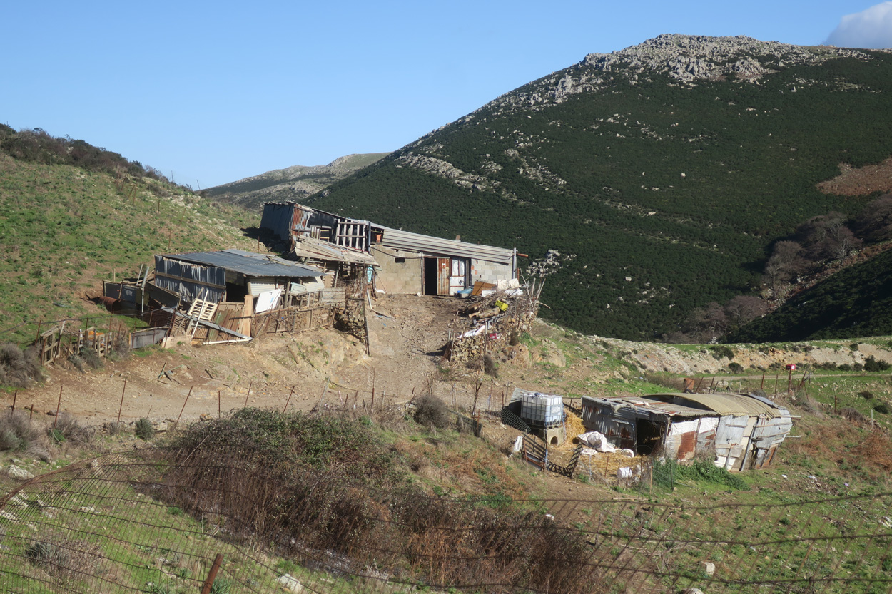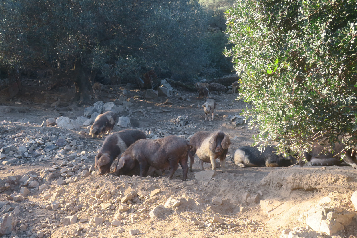 Halbwildschweine bei einem Gehöft beim Bruncu Su Sparau