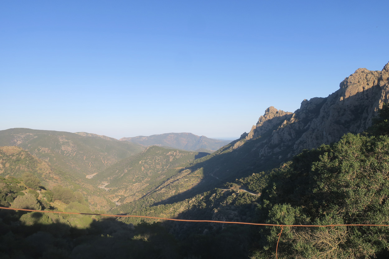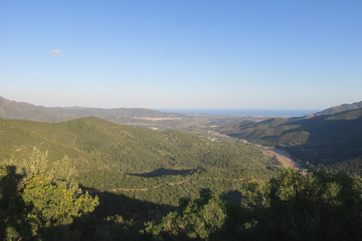 Abfahrt vom Arcu de Is Tellas, Blick auf das Meer und unser Tagesziel Villaputzu