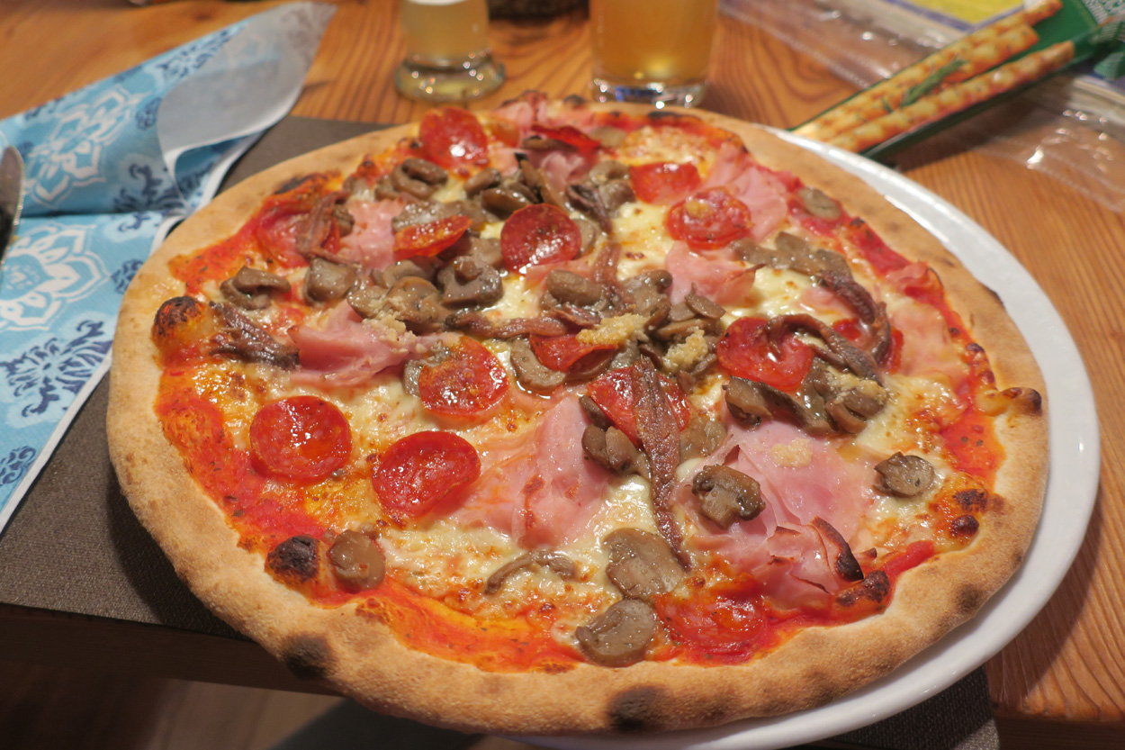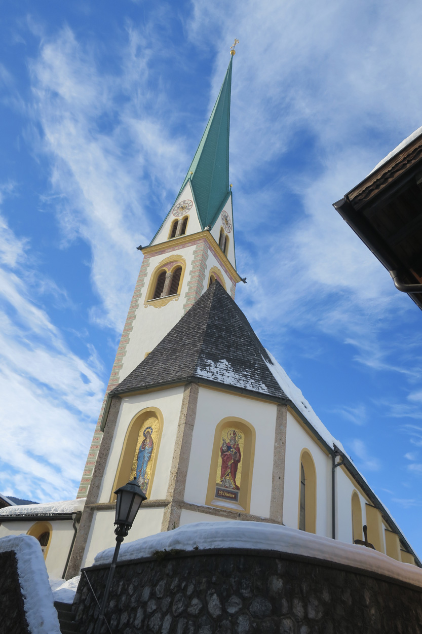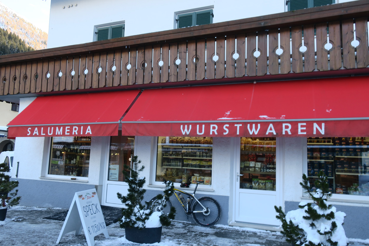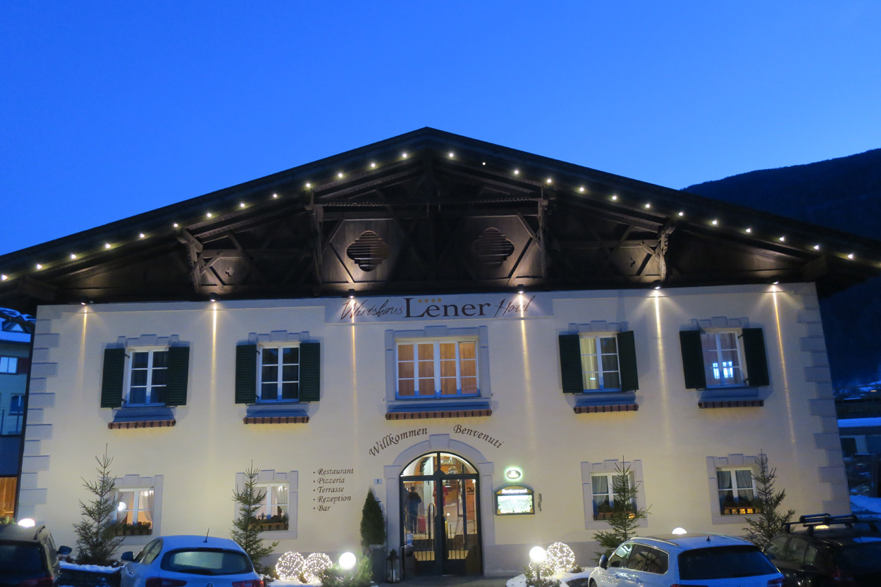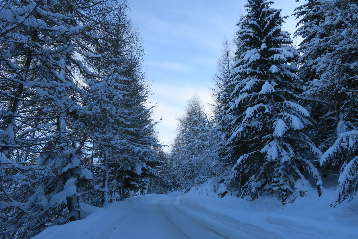 Heute morgen ging es mit dem erst möglichen Zug nach Innsbruck. Schon bei der Anreise durch den Arlberg sah ich, dass zur Zeit extrem viel Schnee liegt. Pünktlich um 10.10Uhr kam ich dann in Innsbruck an. Danach folgte dann bald der Aufstieg beim Bergisel in Richtung Sonnenburgerhof und Natters. Von Natters nach Mutters konnte ich dann dem ersten Schneeschuhtrail folgen. Da es vor einer Woche wohl in den Schnee hineingeregnet hat, waren selbst die Schneeschuhspuren hart genug um darauf fahren zu können. Von Mutters ging es dann auf einem Strässchen zur Kohlstattsiedlung. Von hier an war dann der Fahrweg bis zur Haltestelle Brandegg der Stubaitalbahn, nicht mehr gepfadet. Etliche Fusspuren sorgten jedoch dafür, dass ich trotzdem einen fahrbaren Untergrund hatte. Ab der Haltestelle Brandegg war dann die Bikeroute wieder gepfadet und hatte wenige Autospuren, so dass ich speditiv nach Telfes und Fulpmes kam. In Fulpmes besichtigte ich dann noch kurz die Kirche. In der Kirche fiel mir dann auf dass sich sogar im Weihwasser Eis am bilden war. Die Temperaturen mussten wohl tief unter Null gewesen sein. Auf der Strasse ging es dann nach Matrei am Brenner. Dort folgte ich dann dem Radweg entlang nach Steinach. Auch hier hatte es schneebedeckte aber noch gepfadete Feldwege. In Steinach begann ich dann um 12.45Uhr mit dem Aufstieg nach Nösslach. Leider war dieses Asphaltsträsschen gesalzen. Aber auch so blieb der Schnee liegen. Es war wohl zu kalt, dass das Salz noch Wirkung hatte. Lediglich etwas aufgeweicht war der Schnee. Um 13.30Uhr kehrte ich dann in Aussernösslach auf 1384m im Restaurant des Hotels Hummlerhof ein. Im Angebot war hier noch Wieneschnitzel mit Pommes. Nach dem ich gegessen und mich aufgewärmt hatte ging es gegen 14.30Uhr wieder weiter. Auf der schneebedeckten Straße ging es dann noch 50hm weiter bis Nösslach hinauf. Dort ging es ebenfalls auf der Scheefahrbahn hinunter nach Vinaders. Ab hier waren dann die Strassen zu stark gesalzen und folglich aper. In Gries auf 1150m begann dann noch der Schlussaufstieg auf der Bundesstrasse zum Brennerpass. Etwa um 15.30Uhr überschritt ich dann auf 1370m die Grenze nach Italien. Hier oben war wegen den vielen Shops und Einkaufszentren reger Verkehr und deshalb recht dreckige Luft. Um nach Sterzing zu kommen wollte ich dann den Radweg auf dem Bahntrasse nehmen. Doch der Radweg war nicht geräumt. Es lag etwa ein Meter Schnee drauf. So war die einzige Möglichkeit die Hauptstrasse. Um 16.20 Uhr erreichte ich dann das schöne Städtchen Sterzing. Auch hier war es immer noch bitter kalt. Sogar so kalt, dass sich die Apfelschorle im Bidon vom flüssigen in den festen Zustand verwandelt hatte. Aber irgendwie hatte ich das Gefühl dass es noch etwas zu früh sei un ein Hotel zu nehmen. Deshalb ging es dann auf dem Radweg und einem nicht gepfadeten Feldweg nach Stilfes. Der nicht gepfadete Feldweg war gerade noch fahrbar, aber recht anstrengend. Kurz nach Sonnenuntergang war ich dann in Stilfes. Hier war das Hotel leider wegen Umbau geschlossen. Aber einen Kilometer weiter in Freienfeld gab es dann noch im Hotel Lener ein Zimmer mit ausgezeichneter Halbpension und einer Pizza als Hauptgang.