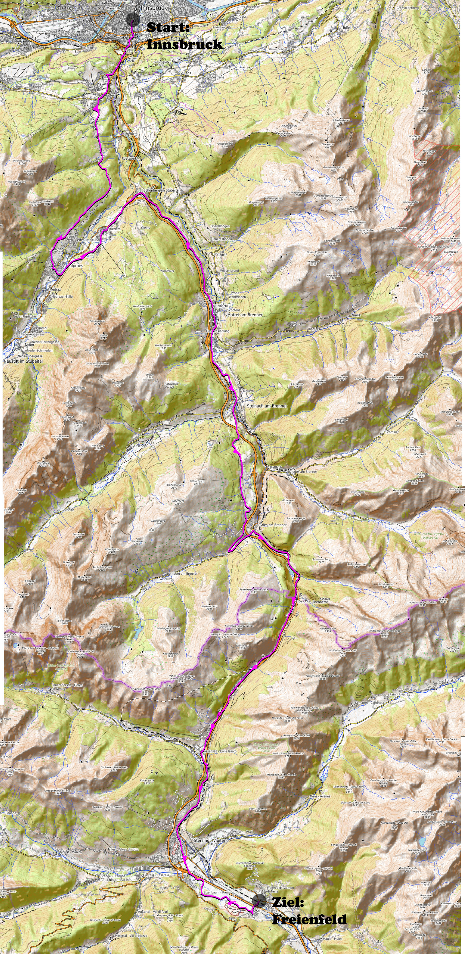 Aussernösslach- Nösslach- Vinaders- Gries- Brennerpass- Brennerbad- Gossensass-