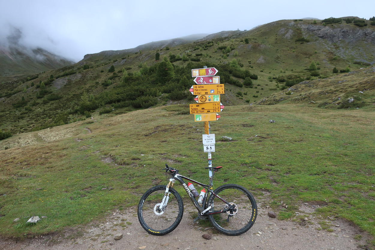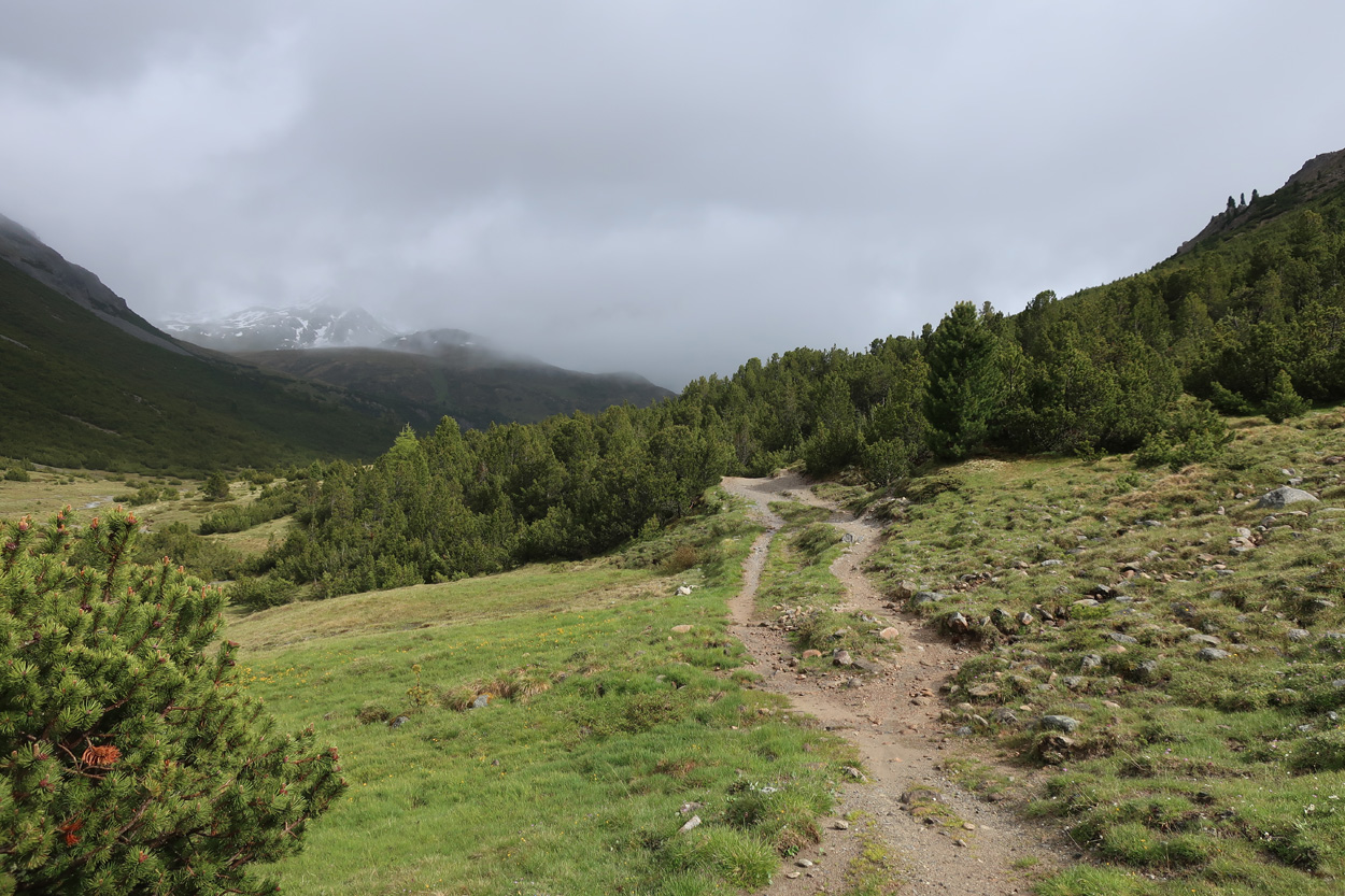 Da das Wetter heute nicht so prickelnd war schlief ich am Morgen mal aus. Danach machte ich mir Gedanken wohin meine Biketour gehen könnte. Ich kam dann auf die Idee dass ich mit dem Zug nach Scuol fahren könnte, wo ich letzten Samstag meine Tour vom Bodensee aus beendete und quasi eine Fortsetzung davon machen. Um 11.30Uhr machte ich mich dann auf den Weg zum Bahnhof. Während der Bahnfahrt schüttete es an einigen Orten ordendlich vorallem vor dem Vereinatunnel. Nach dem Tunnel im Engadin war es dann immerhin ohne Regen. Um 15.15Uhr ging es dann am Bahnhof Scuol-Tarasp los. Zuerst musste ich ganz hinunter ins Dorfzentrum, da die direkte Brücke zur Gurlaina Gesperrt war. Hier begann dann der Aufstieg in Richtung Pass da Constainas. Bald nach Beginn dieses Aufstieges machte ich noch eine Zusatzschlaufe zur Ranch Son Jon weil ich noch nie dort war. Danach ging es wieder auf der normalen, inposannten Talstrasse nach S-charl. Hier war nicht wahnsinnig viel los. Denn das Wetter war hier auf 1815m schon recht trüb. Bis zur Alp Astras gab es noch eine Fahrstraße. Dann folgte ein schöner aber zu Beginn etwas matschiger Trail. Weil dann Dreck in die Kette kam, hatte ich dann etwas Probleme mit dem Antrieb weil die Kette schon recht ausgelutscht war. Mit der nötigen Vorsicht erreichte ich dann um 17.30Uhr die Passhöhe auf 2250m. Über das kleine Bergdorf Lü radelte ich dann hinunter ins Münstertal. Im Münstertal ging es dann fast ausschließlich auf Wanderwegen bis zur grünen Staatsgrenze bei Müstair. Auf dem offiziellen Radweg fuhr ich dann im Südtirol hinunter nach Laatsch. Kurz vor 19Uhr schaute ich mich dann nach den Hotels um. Ich entschied mich dann für den 2** Gasthof Lamm. Hier konnte ich dann auch im Garten noch mein Velo duschen und meine ziemlich dreckigen Kleider zum Waschen geben. Das Halbpensions Abendessen, welches aus 4 Gängen bestand, war ebenfalls hervorragend.