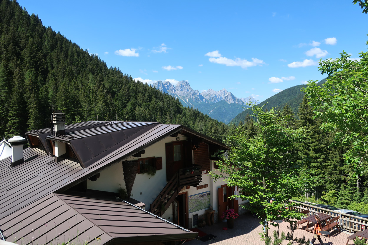 Blick zu meinem Hotel auf dem kleinen Hügel in Sappada Bladen