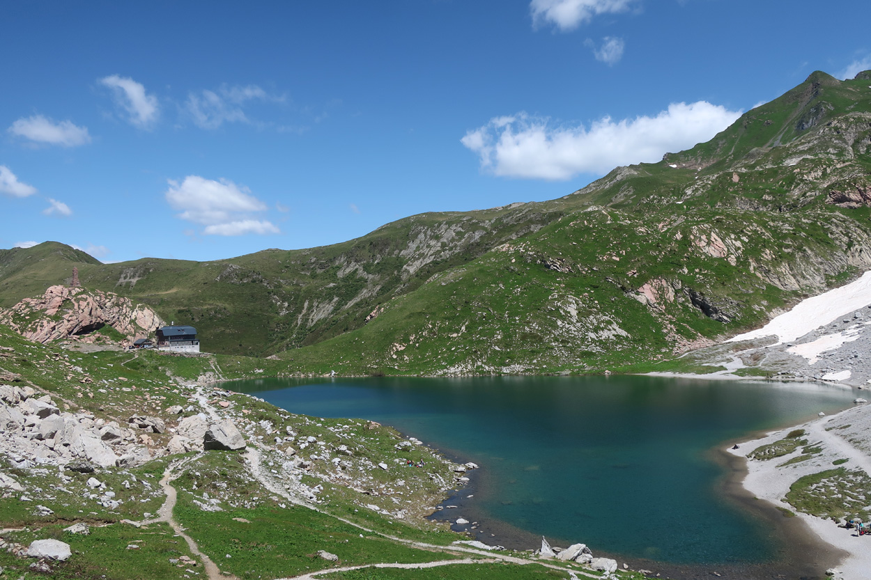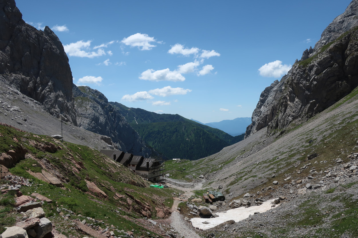 auf dem Wolayerpass, Blick zurück zum Rifugio Lambertenghi