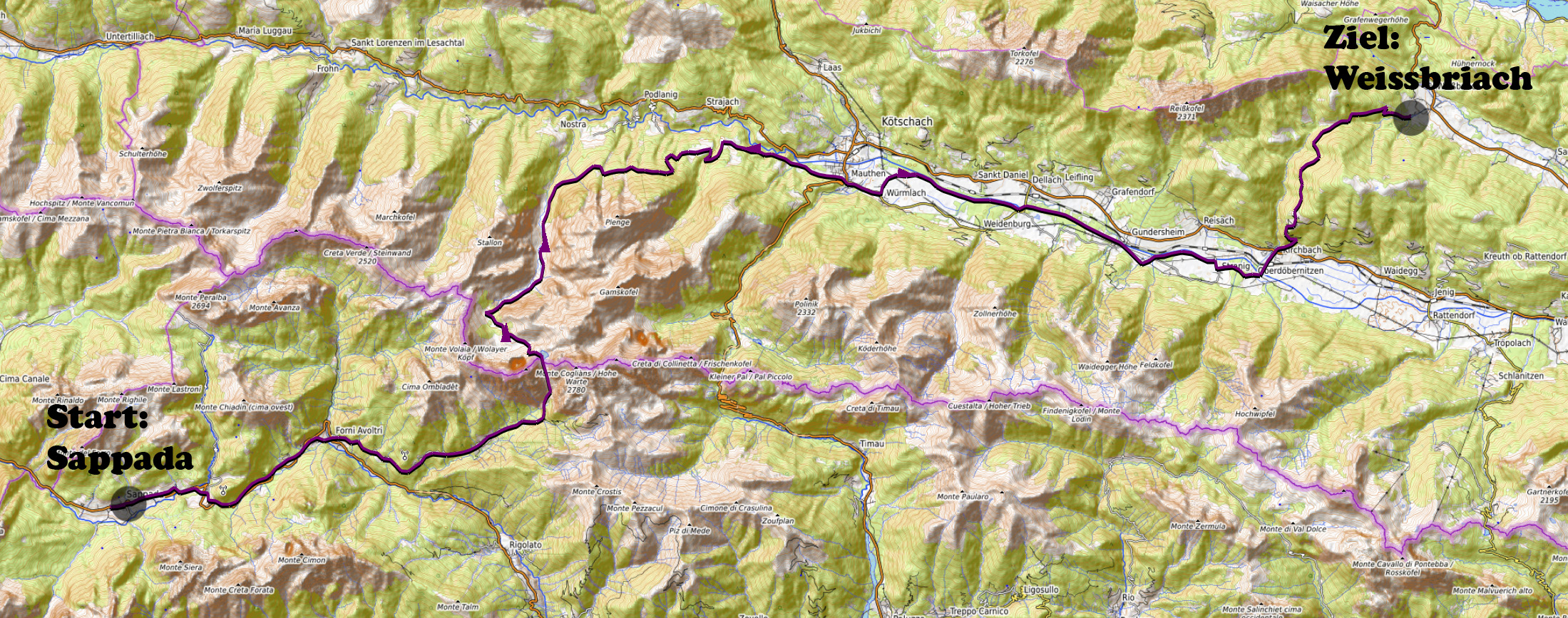 Heute Morgen wollte ich Zeitig starten. Doch leider hatte ich wohl gestern Abend die Sonnenbrille verloren. Die Suche im Hotel führte nicht zum Erfolg. Also kaufte ich bei einem Optiker eine Neue. Um 9.30Uhr ging es dann endlich los. Zuerst durchquerte ich den schönen historischen Ortsteil von Sappada mit den vielen Holzhäusern. Bei Cima Sappada kaufte ich noch Saft. Danach ging es abwärts bis Forno Altrovi. Dort radelte ich dann auf einer sanft ansteigenden Asphaltstrasse bis zum Rifugio Tolazzi. Hier entschied ich mich dann spontan anstatt zum Rifugio Marinelli zum Wolayersee hinauf zu gehen. Bis 1700m gab es eine Piste die Fahrbar war. Die restlichen 300Höhenmeter bis zur Österreichischen Grenze musste ich dann Laufen. Um 12.45Uhr kehrte ich dann in der schönen Wolayerseehütte fürs Mittagessen ein. Danach ging es auf der neu ausgebauten Piste ins Gailtail hinunter. Zum Abschluss des Tages fuhr ich dann noch über den Stöfflerberg und die Mösleralm nach Weissbriach wo ich um 18.15 Uhr das erst beste Hotel aufsuchte. Neben dem Abendessen blieb auch noch Zeit für einen Bikeservice. Leider entdeckte ich dann Probleme beim Tretlager.....jetzt muss ich schauen wie lange das Bike noch mitmacht.