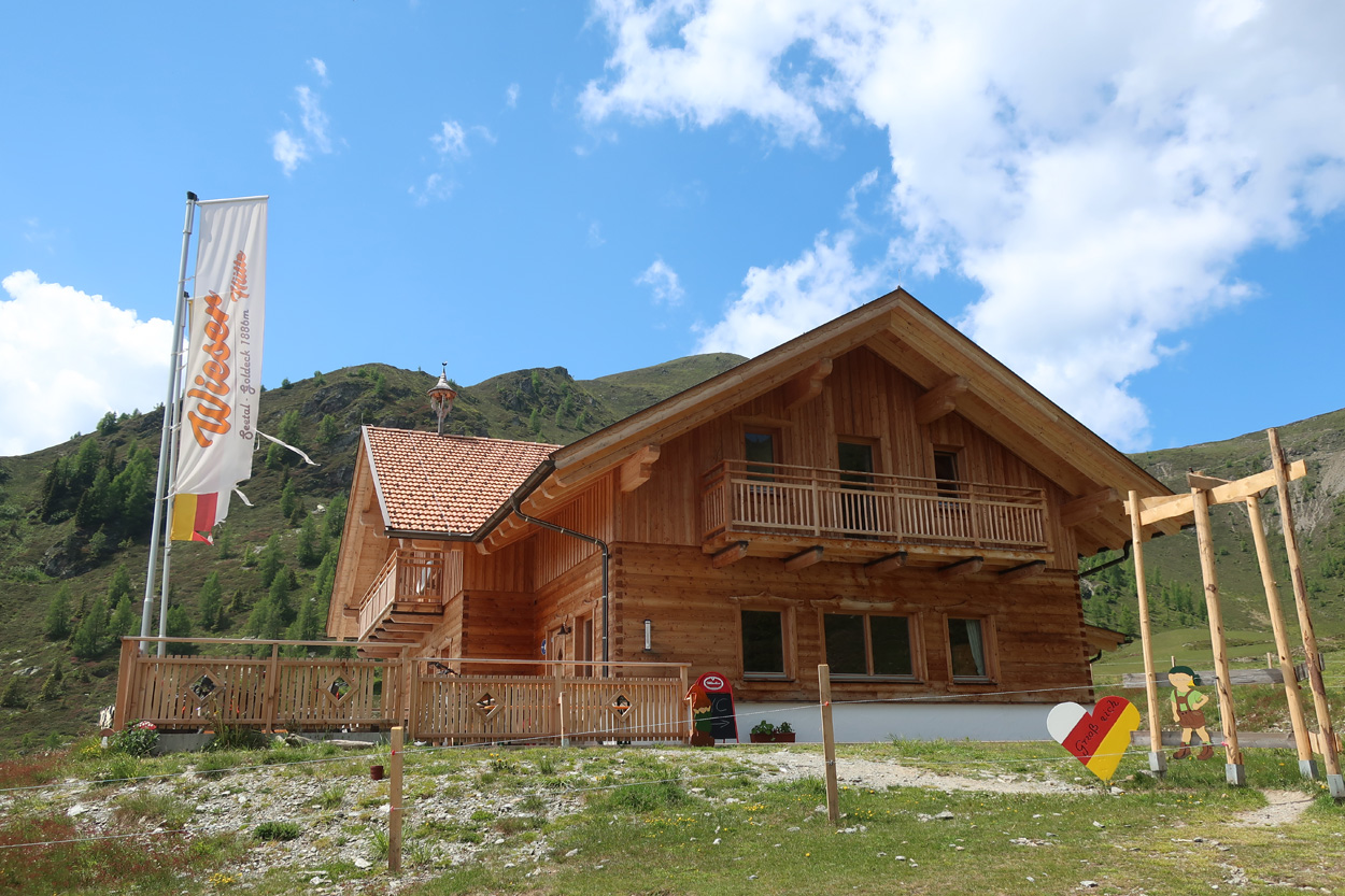 die Wieserhütte mit dem Goldeck im Hintergrund