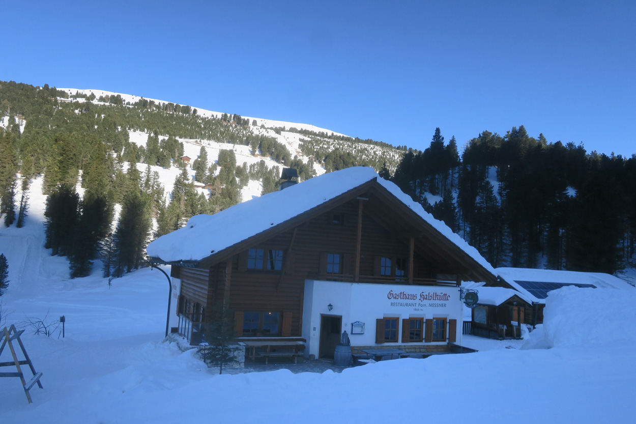 Gasthaus Halslhütte an der Schneepiste zum Würzjoch