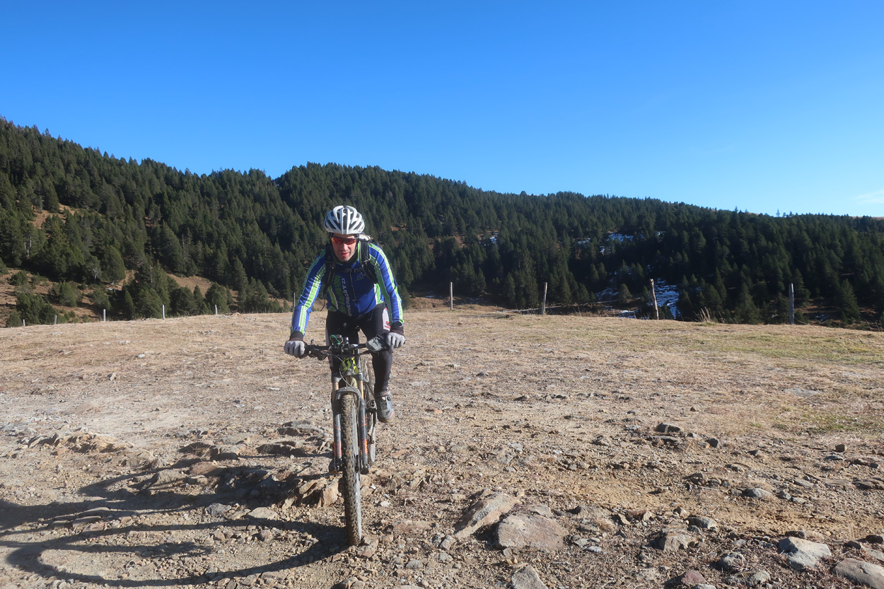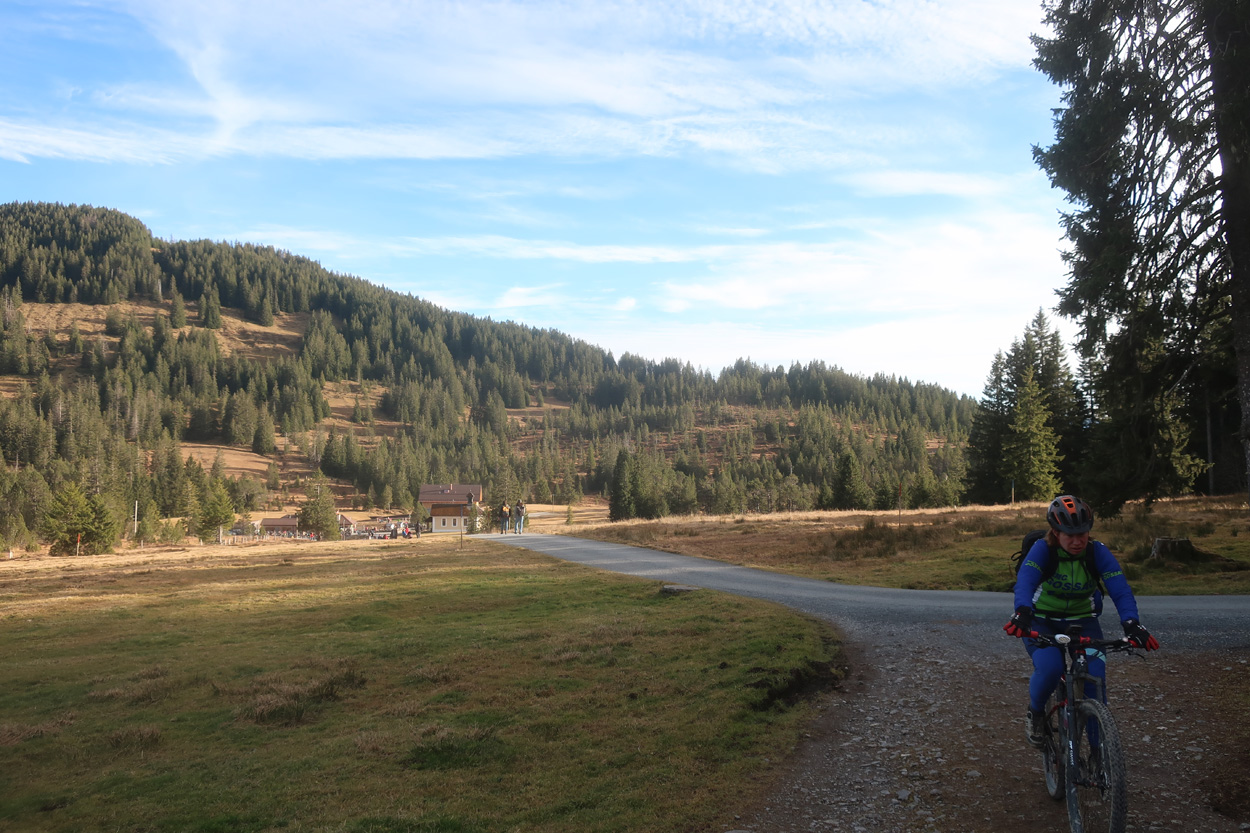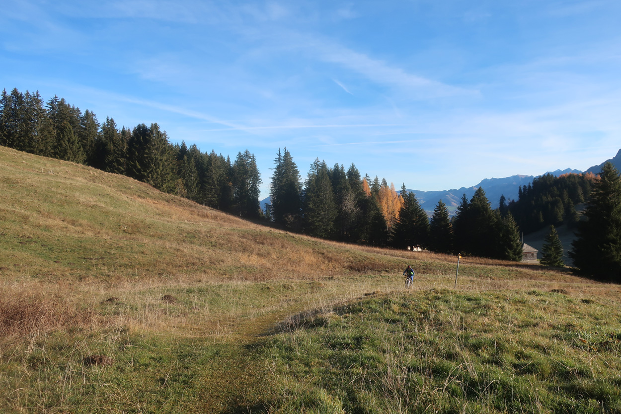 Bikeroute auf der Westseite des Molésons bis zur Alp Belle Chaux. Dort fuhren