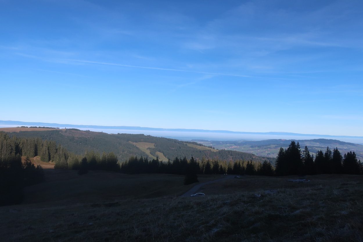 bei der Alp Gros-Plané, Blick auf den Jura zum Chasseral
