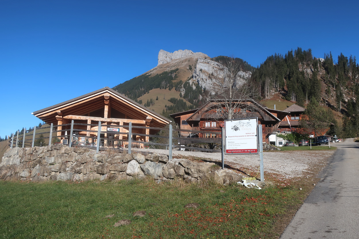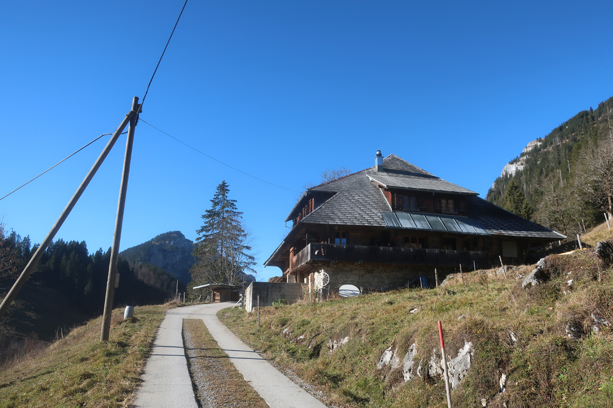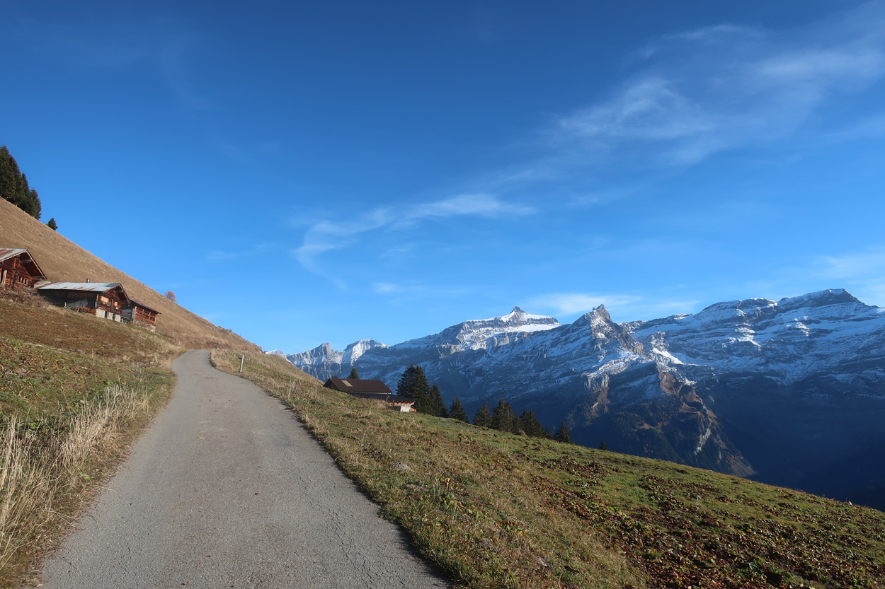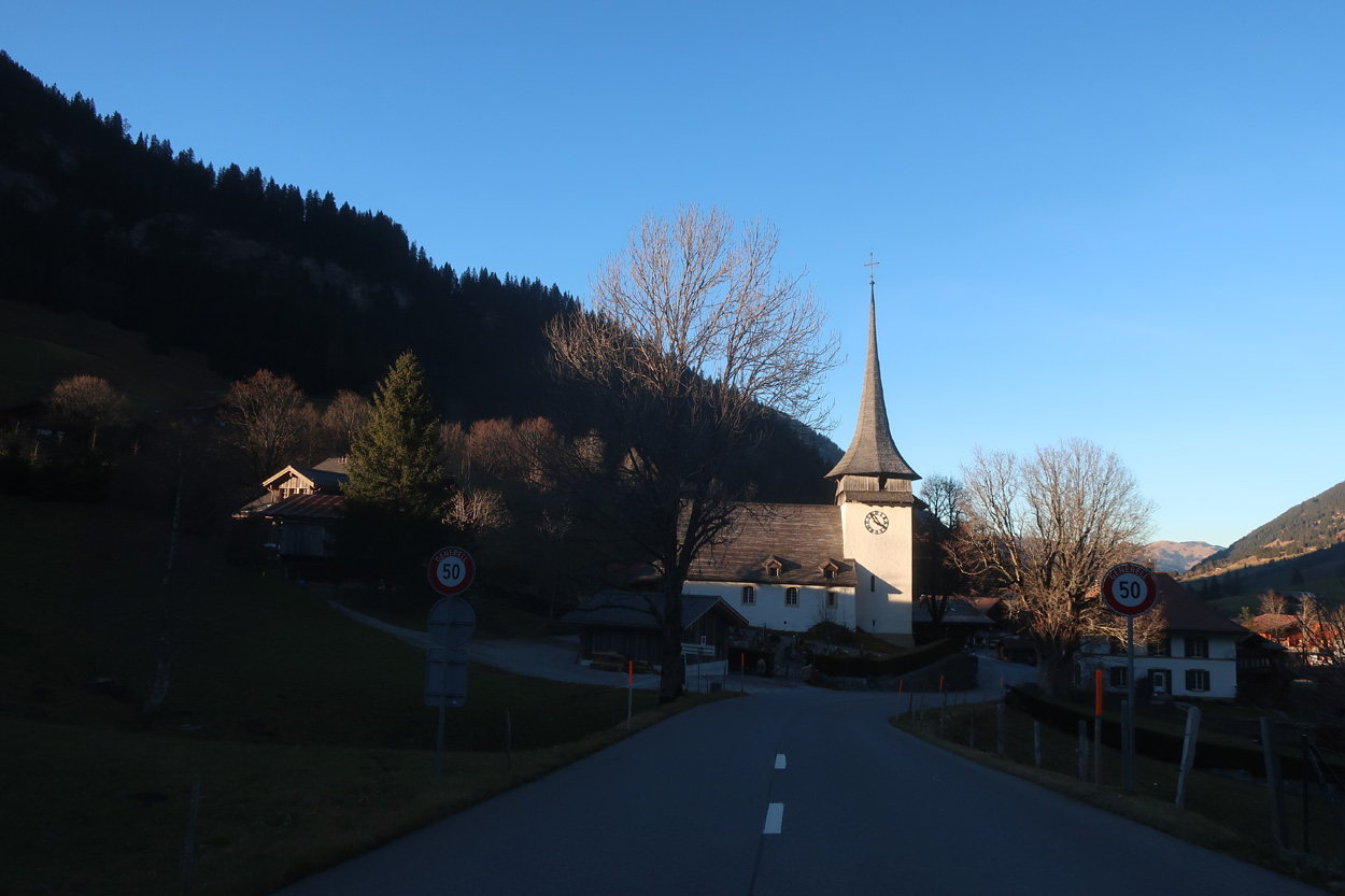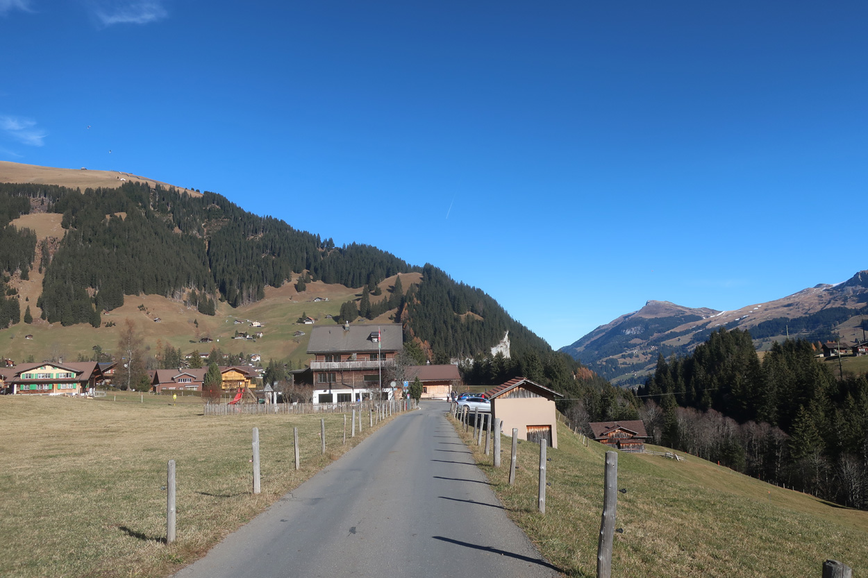 es dann auf dem Asphalt zum Col du Pillon hinunter und weiter nach Gsteig. Hier