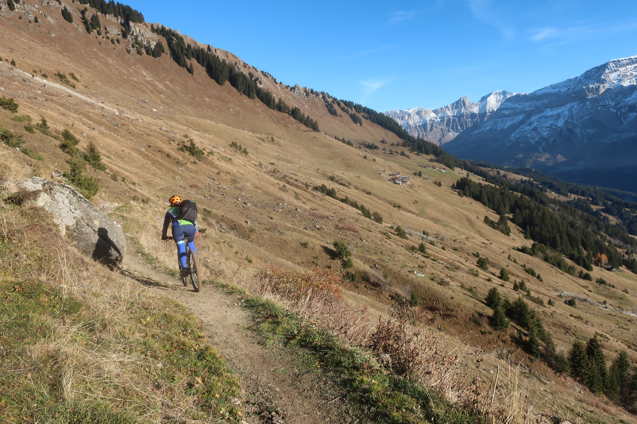 gut ausgebauter Biketrail von der Alp La Lé nach La Dix