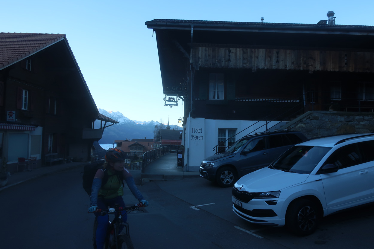 dann auf einem tollen Trail hinunter nach Lauenen. Hier bezogen wir dann um