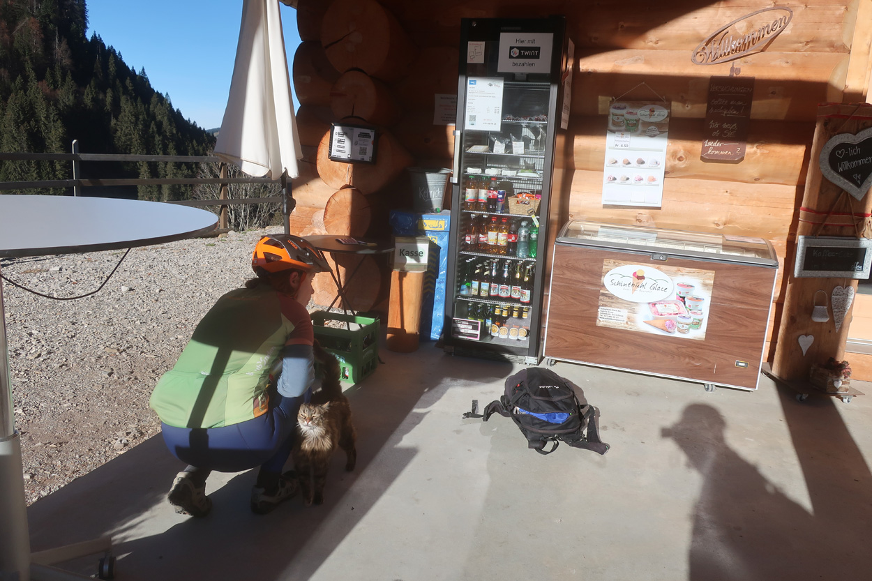 Bikeroute fuhren wir dann weiter bis zur Alp Odinou. Dort auf 1700m verspeisten