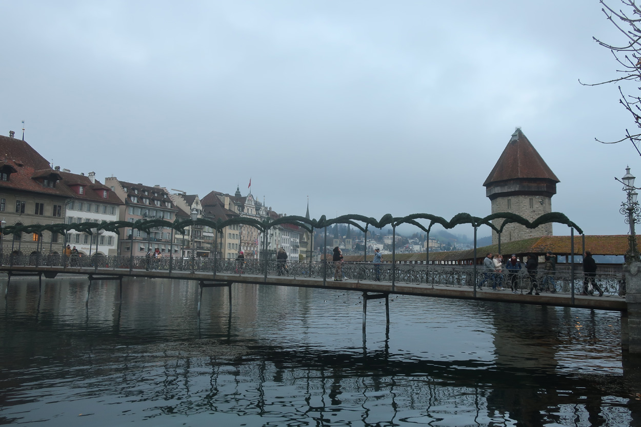 mit dem Rathaussteg und der Kapellbrücke