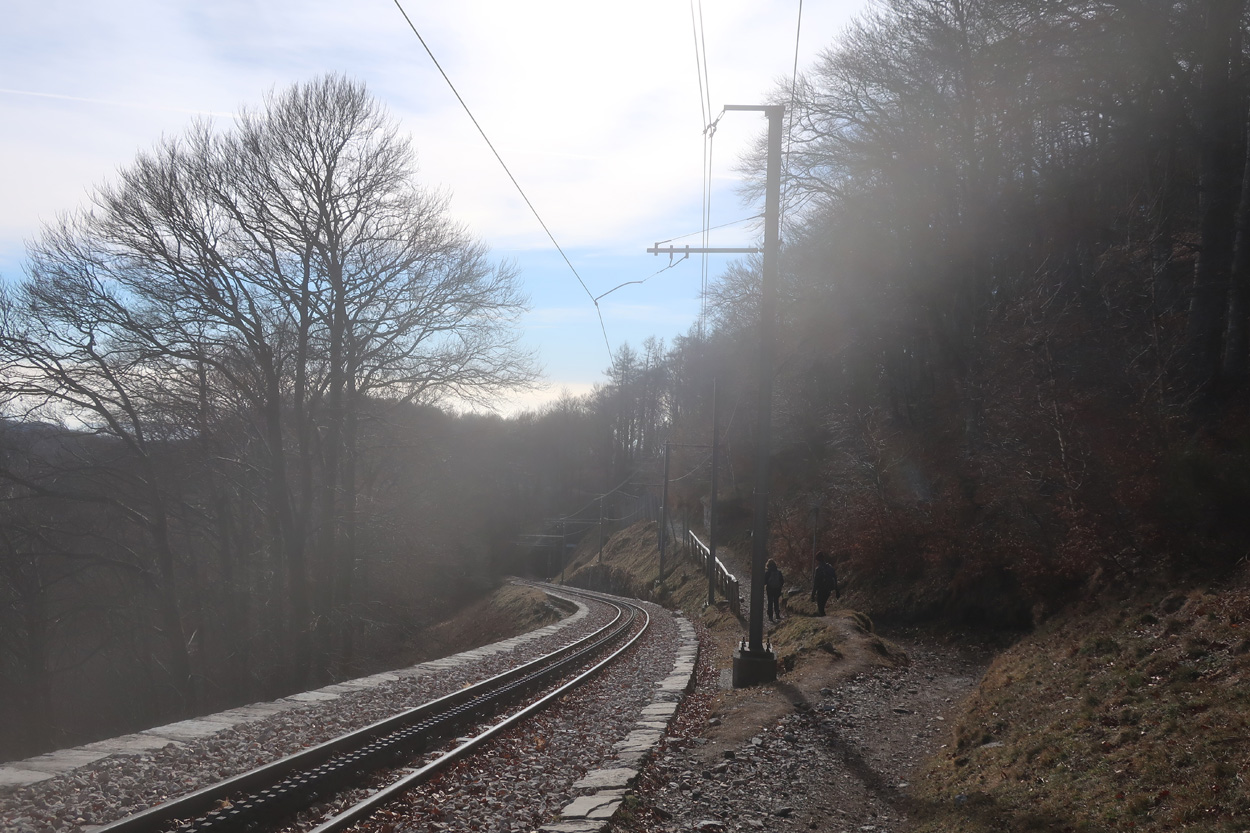 Zahnradbahn hier hinauf in der Winterpause und folglich das Restaurant