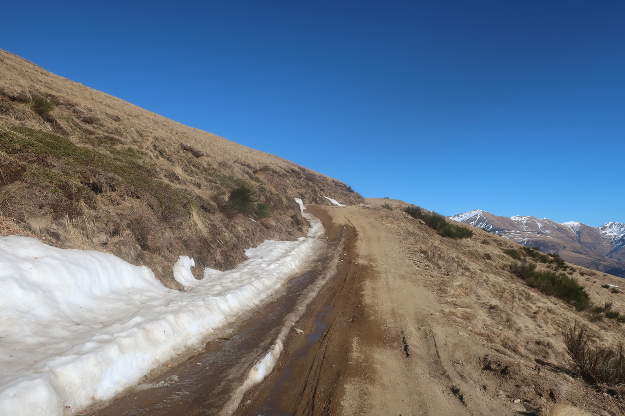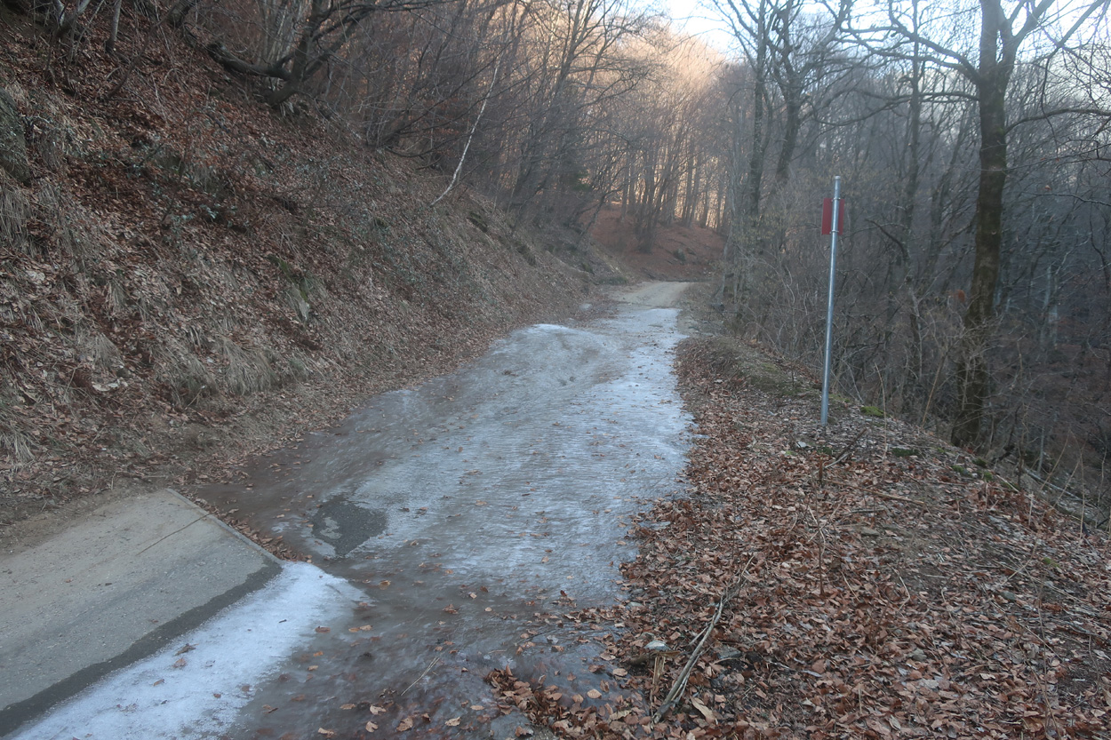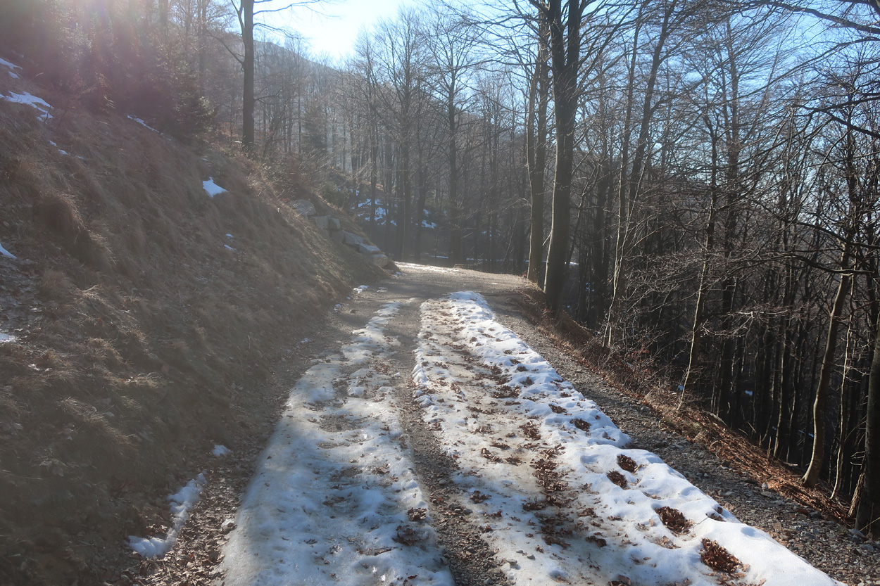 erste Schneeresten auf der Strasse. Deshalb verzichtete ich dann auf die
