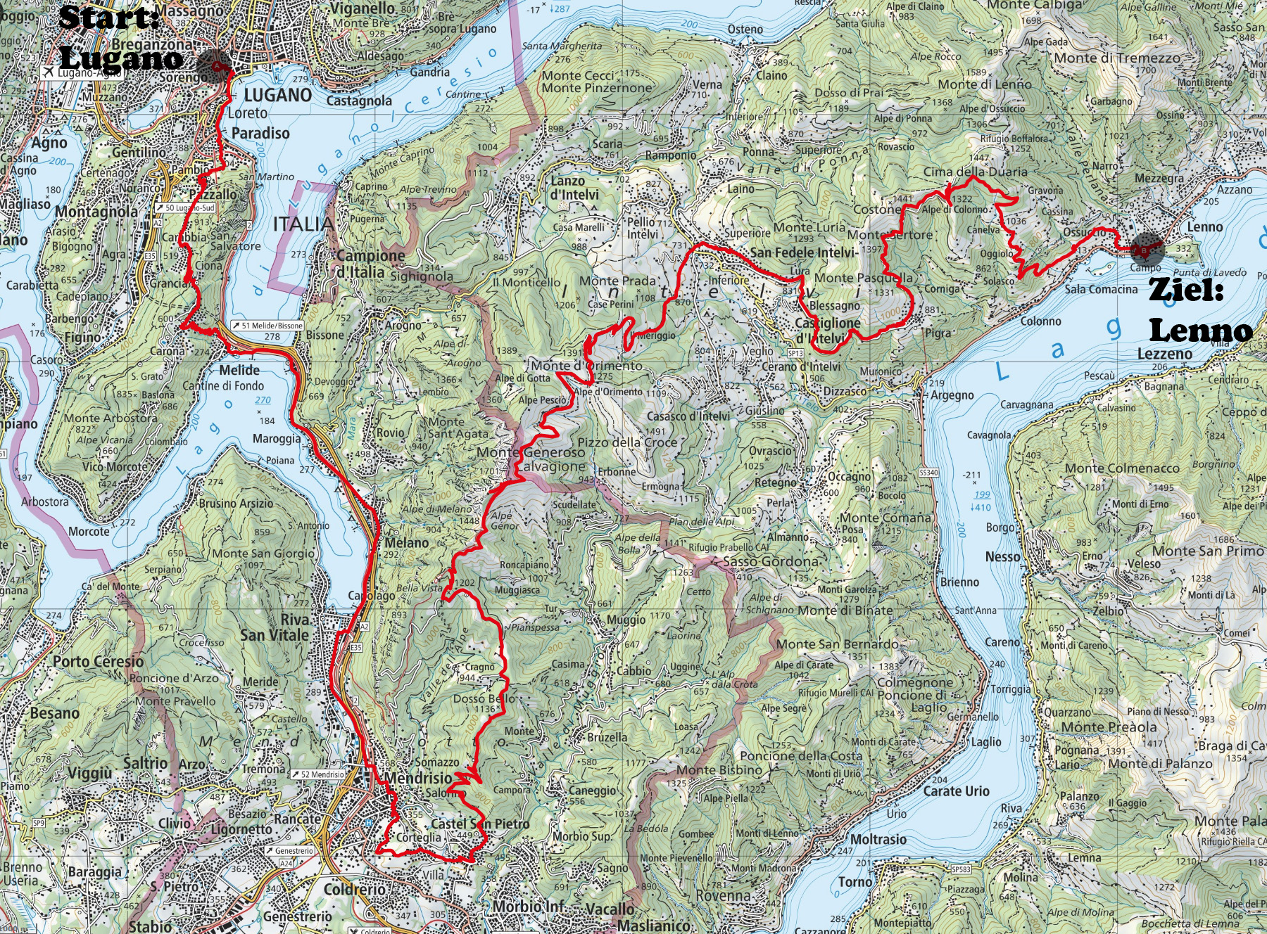 Ciona- Carona- Melide- Bissone- Maroggia- Melano- Capolago- Mendrisio- Corteglia-