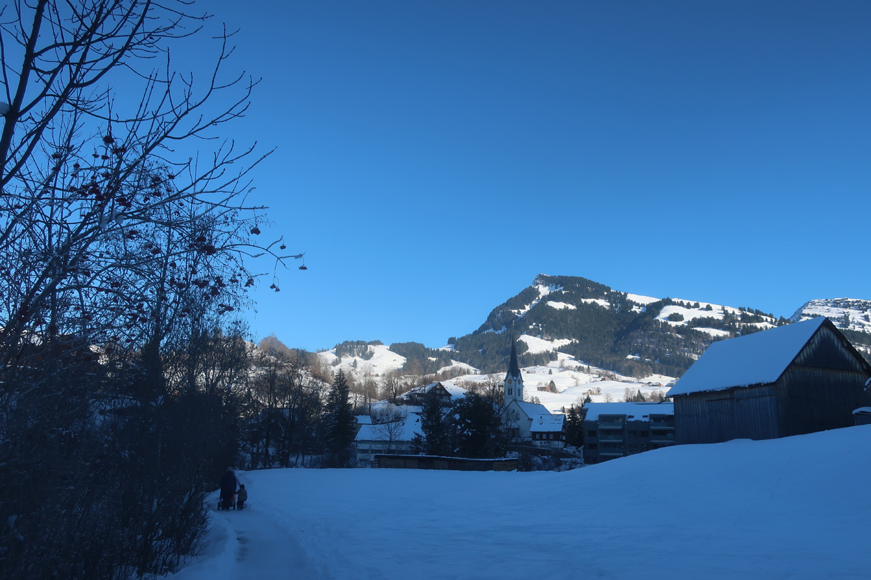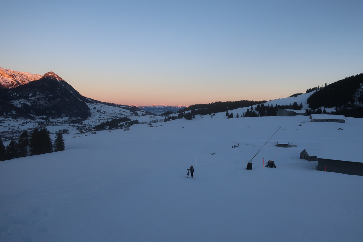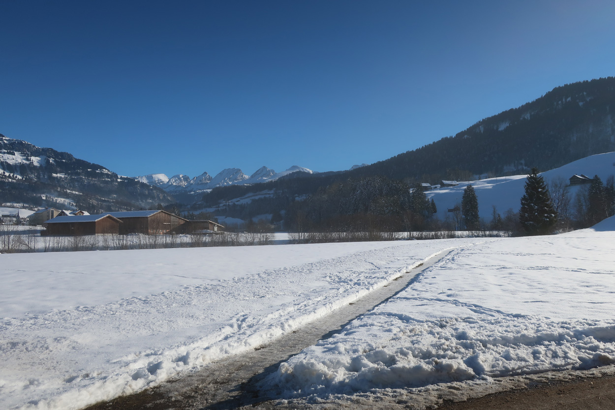 auf dem eher weichen Winterwanderweg zwischen dem Iltios und der