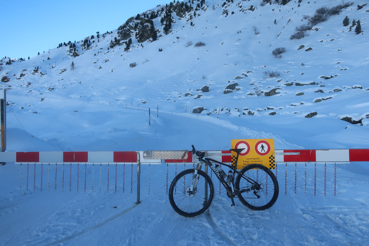 Strassensperre hinter dem Gasthaus zum Tschuggen