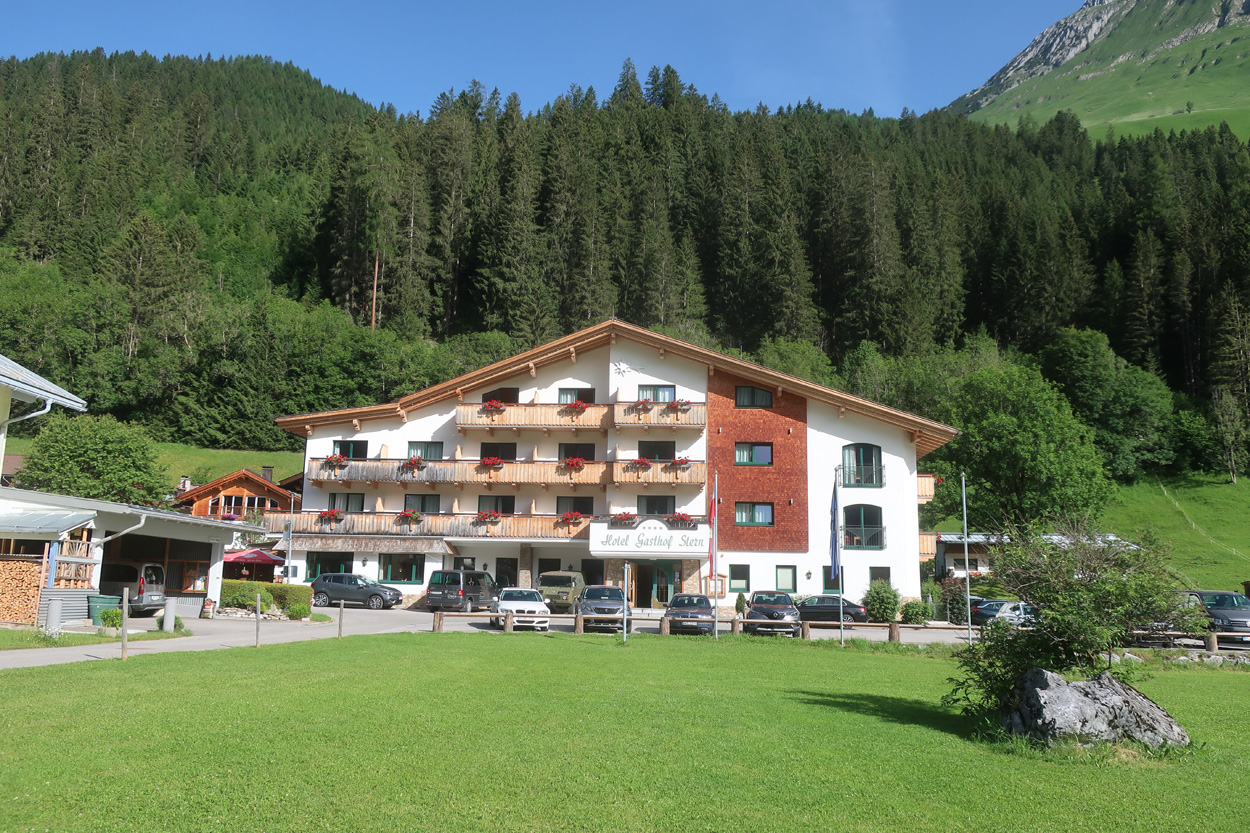 vor dem Hotel Stern in Elbigenalp