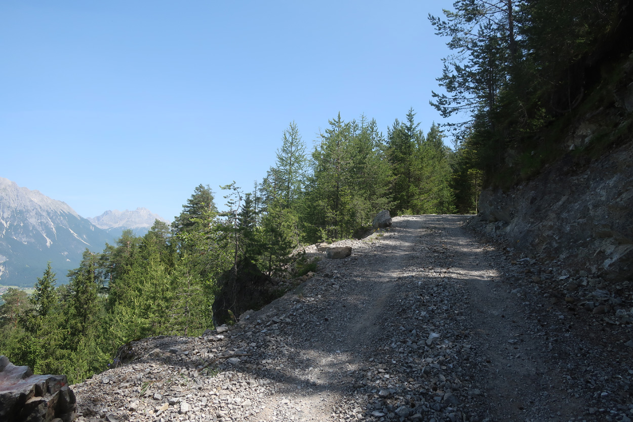in Richtung Schrofenpass. Bis 1550m gab es ein Fahrweg.