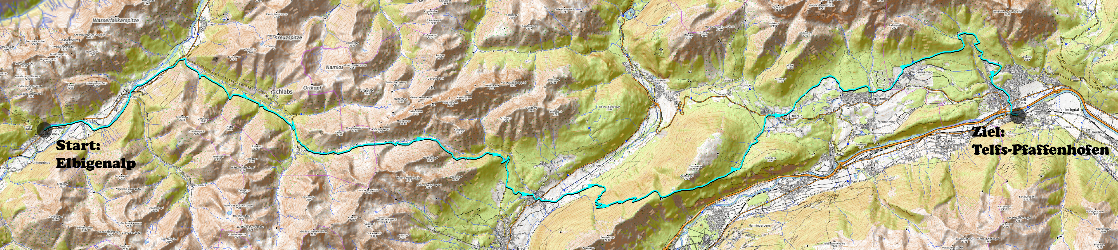 Lechleiten- Prenten- Steeg- Holzgau- Stockach- Bach- Untergrünau- Elbigenalp