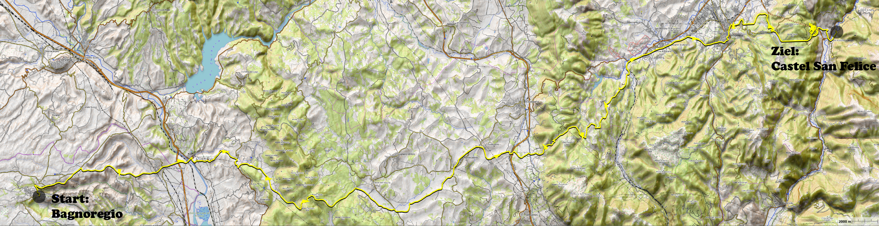 Übersichtskarte des Bahntrasses von Spoleto nach Castel San Felice