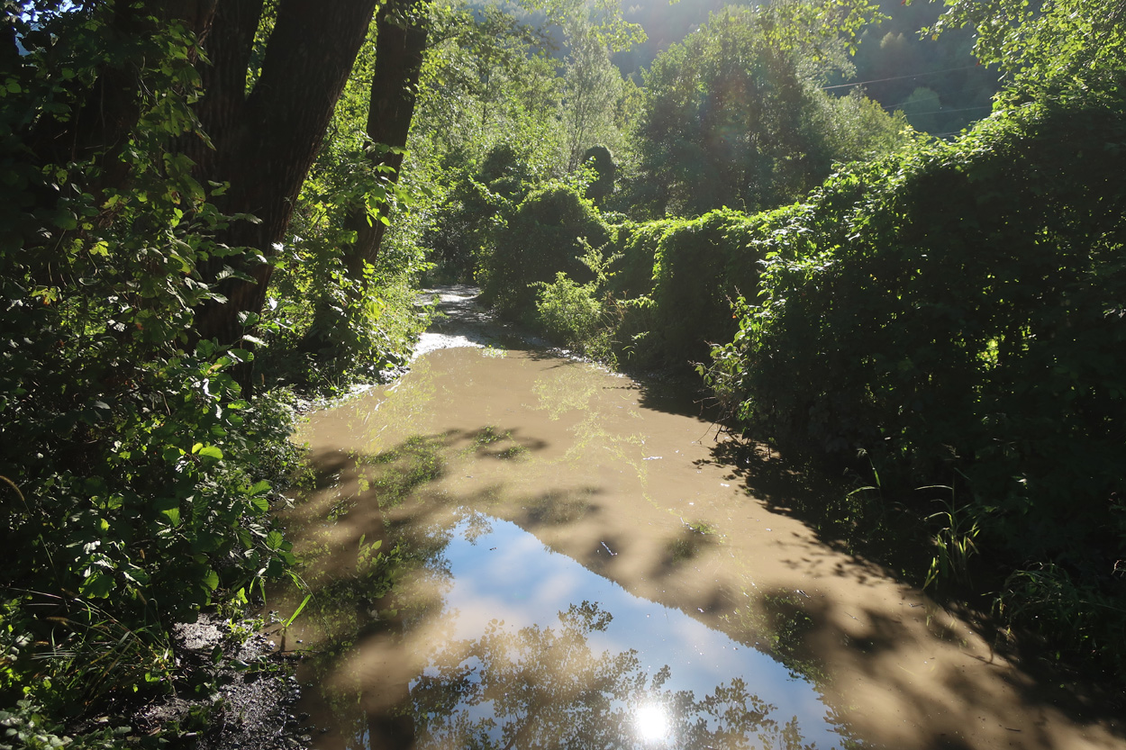 Gröbere Pfütze auf dem Sentiero Valtellina zwischen San Giacomo und Tresenda