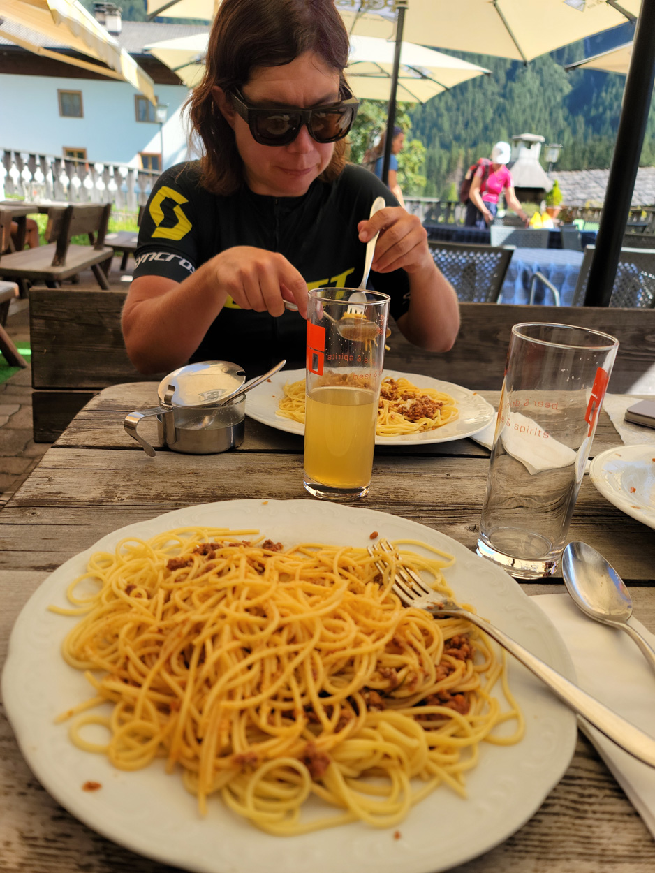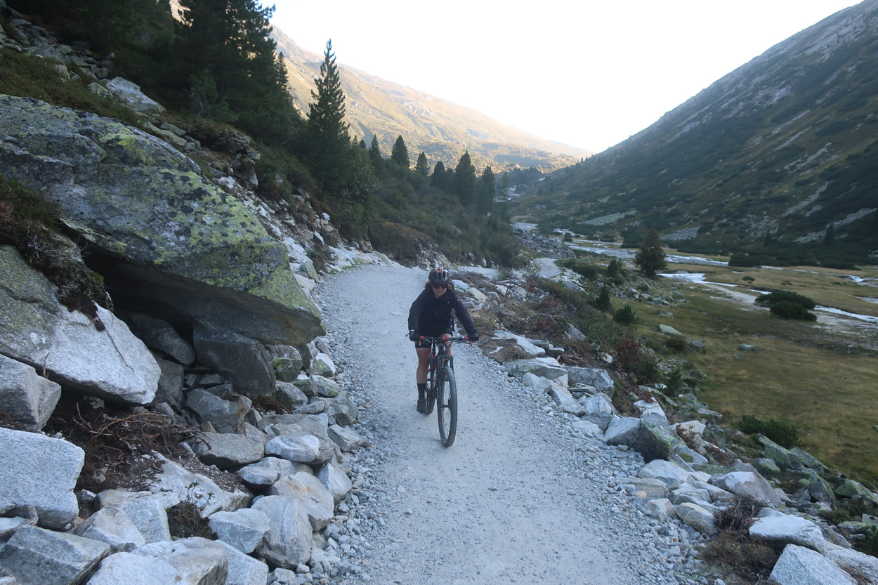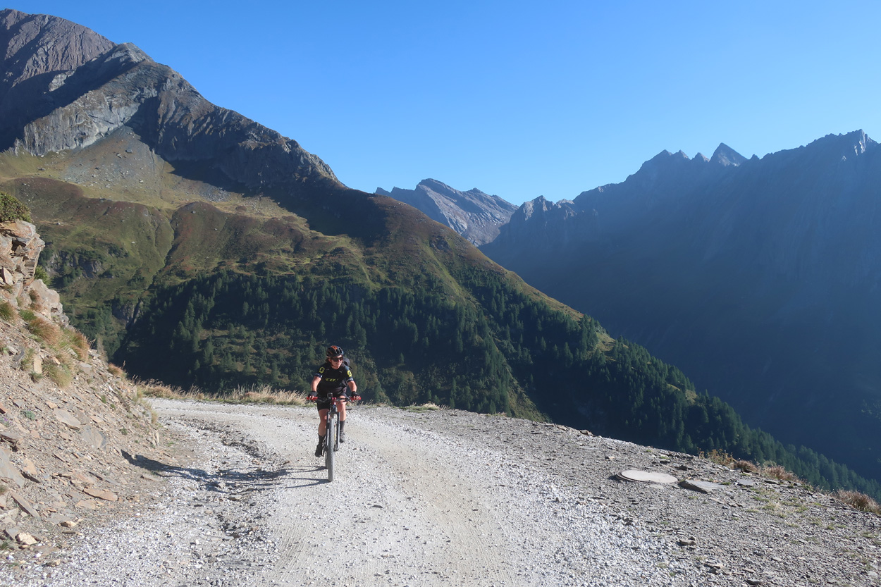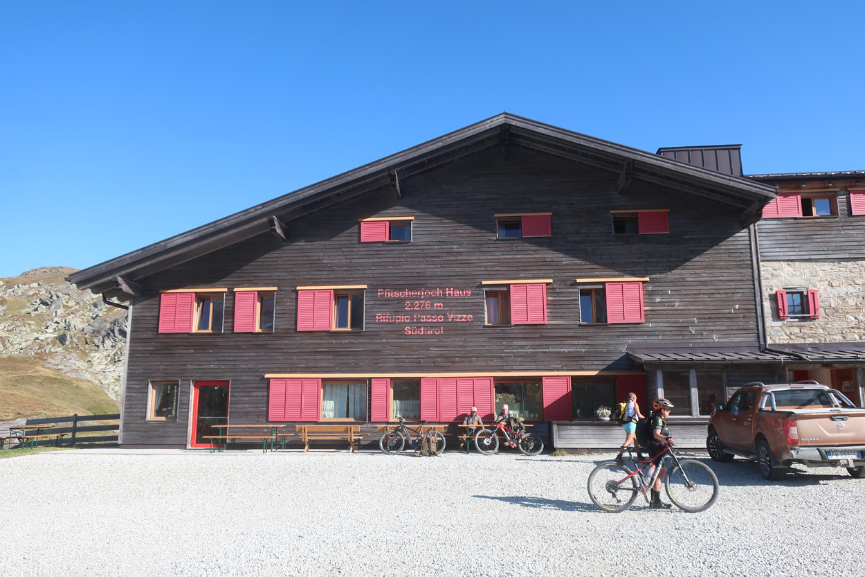 Heute Morgen bestieg ich um 6:42Uhr den Zug um damit auf den Brennerpass zu reisen. In Bregenz, wo ich 40min auf den Anschlusszug warten musste, machte ich noch schnell eine Stadtbesichtigung und kaufte noch etwas Proviant. Pünktlich um 12.00Uhr kam ich dann auf dem Brennerpass auf 1370m am. Hier ging es dann auf der Südtiroler Seite 2km leicht abwärts. Danach begann dann der Aufstieg auf einer gut fahrbaren Militärpiste zum Flatschjoch auf 2395m. Hier traf ich dann kurz vor 14Uhr wieder meine Schwester welche anfangs Woche schon zuhause lorgeradelt war. Ich war auch erstaunt wie viele Mountainbiker auf dieser Strecke unterwegs waren. Vom Flatschjoch führte dann anfänglich ein kurzer Trail und danach ein neuer Fahrweg hinunter nach Grube ins Pfitschertal. Im Talgrund radelten wir dann bis St. Jakob. Hier fanden wir dann um 14.30Uhr ein Restaurant für unsere Mittagspause. Nach der Stärkung vom Salatbüffet und einer grosse Portion Spaghetti ging es dann taleinwärts weiter bis zum Weiler Stein, wo dann der Aufstieg zum Pfitscherjoch begann. Auf dieser Fahrstrasse mit militärischem Hintergrund erreichten wir dann kurz vor 17Uhr das Pfischer Joch Haus auf 2276m. Hier tranken wir dann noch etwas. Danach führte uns der frisch präparierte und bestens fahrbare Bikeweg hinunter zum Schlegeisspeichersee. Hier telefonierte ich um 17.45Uhr meinen favorisierten Unterkünften wegen einem Zimmer, doch leider ohne Erfolg. Also fuhren wir talabwärts weiter bis Ginzling. Hier fragte ich dann im Cafe Gasthaus um Beherbergung doch auch hier war voll. Gleich daneben befand sich dann das Gästehäus Alt Ginzling. Wir hatten hier Glück, denn der Gastgeber kam gerade von einer Velotour zurück und bot uns in diesem schönen historischen Gebäude ein Zimmer und sogar ein sehr gutes Abendessen an.