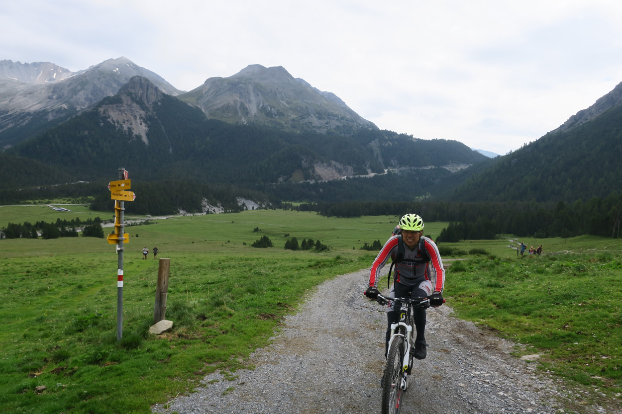 zu Beginn der Abfahrt vom Jufplaun ins Val Mora