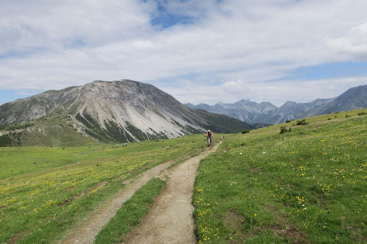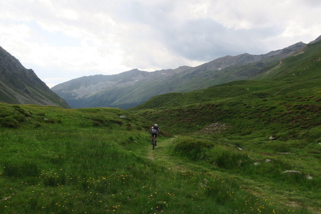 hinunter und auf einem schönen Trail weiter zum Passo die Fraele. Hier fuhren