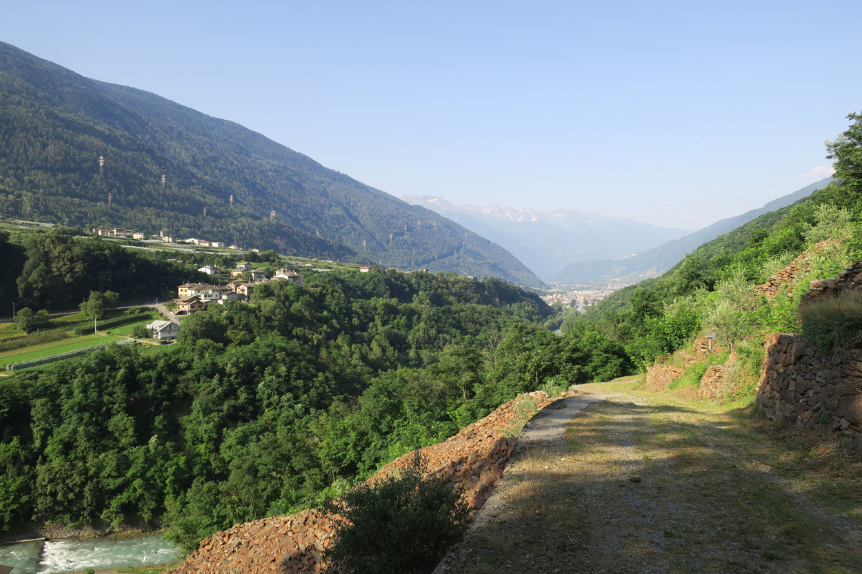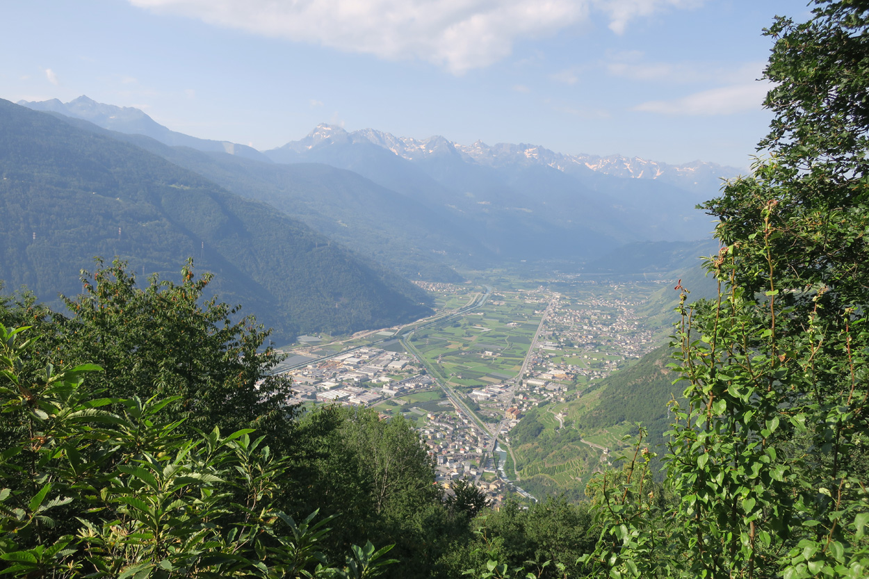 Aufstieg nach Baruffini, Blick zurück auf Tirano